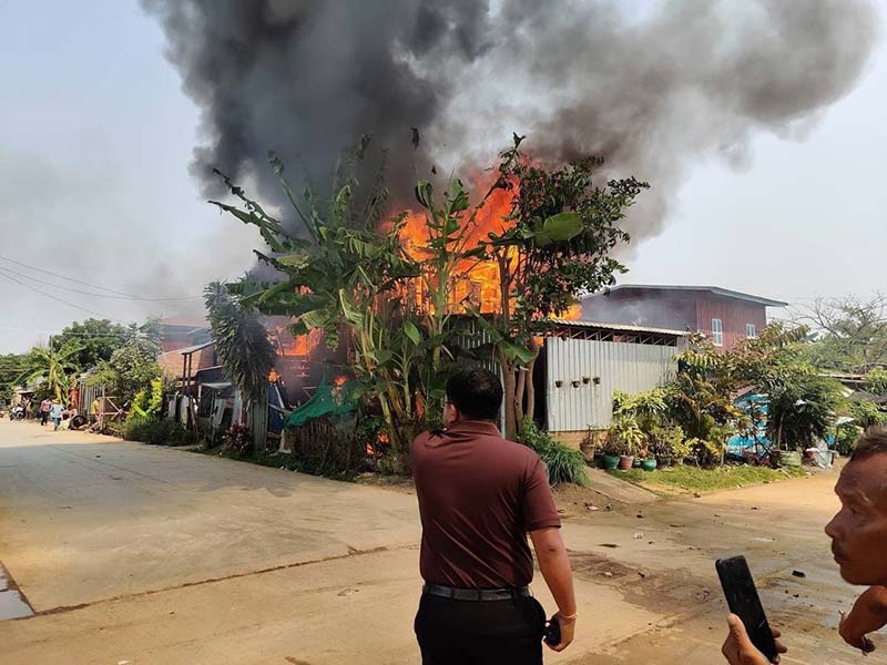 (បន្ទាយមានជ័យ)៖ ទុរសេខ្សែភ្លើងបណ្តាលឲ្យឆ្លងចរន្តបង្កជាអគ្គីភ័យ ឆាបឆេះផ្ទះឈើប្រក់ស័ង្កសីអស់ចំនួន២ខ្នងមាន ១ខ្នងឆេះអស់ទាំងស្រុង និងមួយខ្នងទៀត ឆេះអស់ប្រមាណ៣០ភាគរយ ហេតុការនេះបានកើតឡើងនៅម៉ោង ១១និង៤០នាទីថ្ងៃទី០២ ខែមីនា ឆ្នាំ២០២២ ក្នុងភូមិ.សង្កាត់កំពង់ស្វាយ ក្រុងសិរីសោភ័ណ។