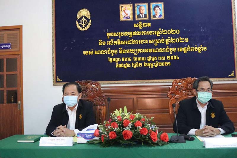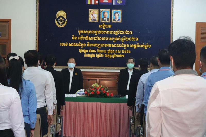ខេត្តកំពង់ឆ្នាំង: សាលាដំបូងខេត្តកំពង់ឆ្នាំងនិងអយ្យការបើកសន្និបាតបូកសរុបលទ្ធផលការងារ ឆ្នាំ2020 និង លើកទិសដៅការងារបន្តឆ្នាំ2021 ។អង្គសន្និបាតខាងលើនេះប្រព្រឹត្តទៅក្រោមអធិបតីភាពលោកតេងរតនាប្រធានសាលាដំបូងខេត្តកំពង់ឆ្នាំងព្រះរាជអាជ្ញានិងមានការចូលរួមពីអស់លោកលោកស្រីព្រះរាជអាជ្ញារងចៅក្រមប្រធានលេខាធិការដ្ឋានអនុប្រធាននាយកដ្ឋានក្រឡាបញ្ជីមន្ត្រីរដ្ឋបាលនិងមន្ត្រីជាប់កិច្ចសន្យាជាច្រើនរូបចូលរួមផងដែរ ។