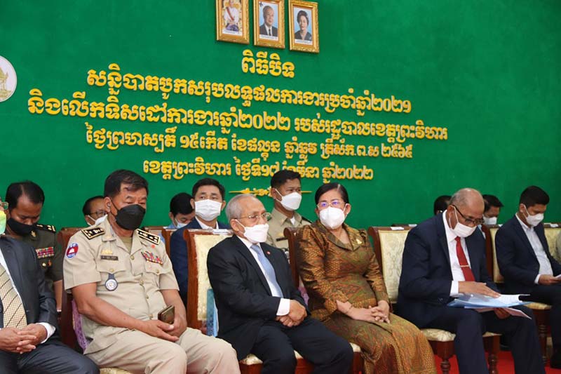 ព្រះវិហារៈ នាព្រឹកថ្ងៃទី១៧ ខែមីនា ឆ្នាំ២០២២នេះ បានបិទសន្និបាតបូកសរុបលទ្ធផលការងារប្រចាំឆ្នាំ២០២១ និងលើកទិសដៅការងារឆ្នាំ២០២២ របស់រដ្ឋបាលខេត្ត នៅសាលប្រជុំអគារដ្ឋបាលខេត្ត ក្រោមអធិបតីភាព ឯកឧត្តម មាស សុភា ទេសរដ្ឋមន្ត្រីទទួលបន្ទុកបេសកម្មពិសេស និងជាប្រធានក្រុមការងាររាជរដ្ឋាភិបាលចុះមូលដ្ឋានខេត្តព្រះវិហារ ឯកឧត្តម ឡុង សុវណ្ណ ប្រធានក្រុមប្រឹក្សាខេត្ត និងឯកឧត្តម ប្រាក់ សុវណ្ណ អភិបាលនៃគណៈអភិបាលខេត្ត ព្រមទាំងមានការចូលរួមពីក្រុមការងារចុះជួយមូលដ្ឋានខេត្តព្រះវិហារ សមាជិកក្រុមប្រឹក្សាខេត្ត គណៈអភិបាលខេត្ត ប្រធានសាលាដំបូងខេត្ត ព្រះរាជអាជ្ញានៃអយ្យការអមសាលាដំបូងខេត្ត ថ្នាក់ដឹកនាំមន្ទីរអង្គភាពនានាជុំវិញខេត្ត កងកម្លាំងប្រដាប់អាវុធទាំង៣ អាជា្ញធរស្រុក ក្រុង ឃុំ សង្កាត់ មេប៉ុស្តិ៍ មន្ត្រីរាជការសាលាខេត្ត និងអ្នកពាក់ព័ន្ធជាច្រើនរូបទៀត។
