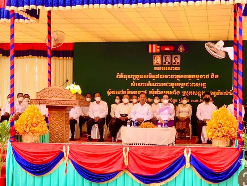 កំពង់ធំះឯកឧត្តម ជា ចាន់តូ សមាជិកអចិន្ត្រៃយ៍នៃគណៈកម្មាធិការកណ្ដាលគណបក្សប្រជាជនកម្ពុជា ទេសាភិបាលធនាគារជាតិកម្ពុជានិងជាប្រធានក្រុមការងារគណបក្សចុះមូលដ្ឋានខេត្តកំពង់ធំនិងលោកជំទាវ ខៀវ ស៊ីណា ជា ចាន់តូ បានអញ្ជើញជាអធិបតីក្នុងពិធីសម្ពោធសមិទ្ធិផលនានាក្នុងវត្តធម្មនាថស្ថិតនៅឃុំតាំងក្រសាំងស្រុកសន្ទុកខេត្តកំពង់ធំថ្ងៃទី១៧ ខែមីនា ឆ្នាំ២០២២ ។ កម្មវិធីនេះមានការអញ្ជើញចូលរួមពីព្រះសង្ឃ សមាជិកព្រឹទ្ធសភា រដ្ឋសភា មន្ត្រីរាជការកងកម្លាំង សិស្សានុសិស្ស។