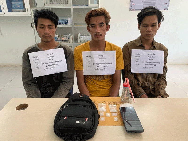 កណ្តាល ៖ ជនសង្ស័យ៣នាក់ចំណោម៥នាក់ ត្រូវប៉ូលិសឃាត់ខ្លួនក្នុងករណីជួញដូរ និងប្រើប្រាស់ដោយខុសច្បាប់នូវសារធាតុញៀន កាលពីថ្ងៃទី២០ ខែមីនា ឆ្នាំ២០២២ វេលាម៉ោង០៩ និង៥០នាទីនៅចំណុចផ្ទះជនសង្ស័យ ពេញ ផាត់ ស្ថិតនៅភូមិពោធិបាន ឃុំពោធិបាន ស្រុកកោះធំ ខេត្តកណ្តាល។