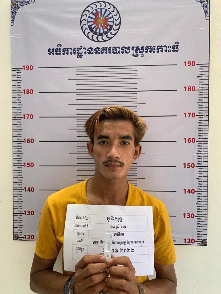 ពេលនោះកម្លាំងប៉ូលិសបានចាប់ឃាត់ខ្លួនបានជនសង្ស័យ នាក់ ១-ឈ្មោះ ថៃ ភ័ក្រ , ២-ឈ្មោះ ឡុង ផានិត និង៣-ឈ្មោះ បូ រ៉ាយុទ្ធ និងឆែកឆេររកឃេីញមានម្សៅក្រាមពណ៌សថ្លាសង្ស័យសារធាតុញៀន(ម៉ាទឹកកកIce) ចំនួន ០៧កញ្ចប់(ធំ០២,តូច០៥) នៅក្នុងកាបូបស្ពាយ រួមជាមួយសម្ភារសម្រាប់វេចខ្ចប់ និងជក់គ្រឿងញៀនមួយចំនួន,ចំណែកឈ្មោះ ពេញ ផាត់ និងឈ្មោះ លី មករា បានរត់គេចខ្លួនរួច។