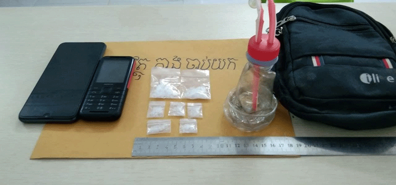 វត្ថុតាងចាប់យកមាន ម្សៅក្រាមសថ្លាសង្ស័យជាសារធាតុញៀនម៉ាទឹកកក(ice) ចំនួន០៧កញ្ចប់(ធំ០២កញ្ចប់),ម៉ូតូចំនួន០២គ្រឿង(ម៉ាកHONDA គុបមូលចាស់ពណ៌ស្លែគ្មានស្លាកលេខ ០១គ្រឿង និងម៉ាកSUZUKI (nex)ពណ៌ផ្កាឈូក លាយស ដែលមានស្លាកលេខ កណ្តាល 1AF.0329 ០១គ្រឿង ),ទូរសព្ទដៃចំនួន០២គ្រឿង : ម៉ាកNOKIA ចុចពិលពណ៍ខ្មៅចំនួន០១គ្រឿង និងម៉ាកrealmeពណ៍ប្រផេះចំនួន០១គ្រឿង )និងកាបូបស្ពាយពណ៌ខ្មៅ ចំនួន ០១ រួមជាមួយសម្ភារៈសម្រាប់ច្រកវេចខ្ចប់នឹងប្រើប្រាស់ជក់ថ្នាំញៀនមួយចំនួនទៀត។