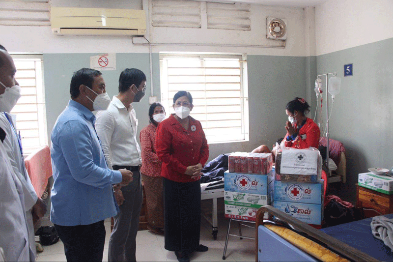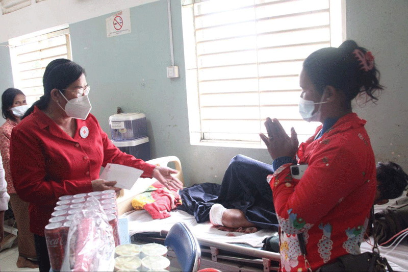នៅថ្ងៃទី២២ ខែមីនា ឆ្នាំ ២០២២នេះ លោកជំទាវ ចឹក ហេង អនុប្រធានអចិន្ត្រៃយ៍ គណៈកម្មាធិការសាខាកាកបាទក្រហមខេត្ត តំណាងឯកឧត្តម ប្រាក់ សុវណ្ណ ប្រធានគណៈកម្មា ធិការសាខាកាកបាទក្រហមកម្ពុជាខេត្តព្រះវិហារ បានចុះសួរសុខទុក្ខនិងនាំយកអំណោយ មនុស្សធម៌ទៅផ្តល់ជូន លោកព្រិនបាលឯក ទិត ហៃ ភេទប្រុស អាយុ ៣០ឆ្នាំ កងទ័ពបម្រើការ នៅកងអនុសេនាតូចលេខ២ កងអនុសេនាធំលេខ១ សឹករងស្រុកជាំក្សាន្ត ចំណុះអោយតំបន់ ប្រតិបត្តិការសឹករងព្រះវិហារប្រចាំការច្រកណងទឹម ដែលរងគ្រោះដោយសារជាន់មីន បណ្តាល ឲ្យដាច់ជើង ត្រឹមកជើង កាលពីល្ងាចម៉ោង៤ថ្ងៃទី២១ ខែមីនា ឆ្នាំ២០២២ នៅចំណុចច្រក ណងទឹម ក្នុងភូមិឈើទាលគង ស្រុកជាំក្សាន្តខេត្តព្រះវិហារ ហើយកំពុងសម្រាកព្យាបាល នៅមន្ទីរពេទ្យបង្អែក ១៦មករាខេត្ត។