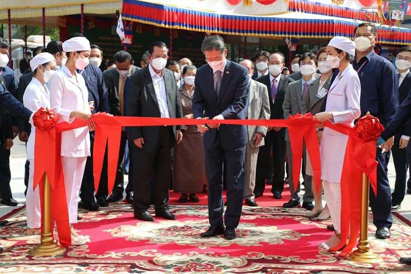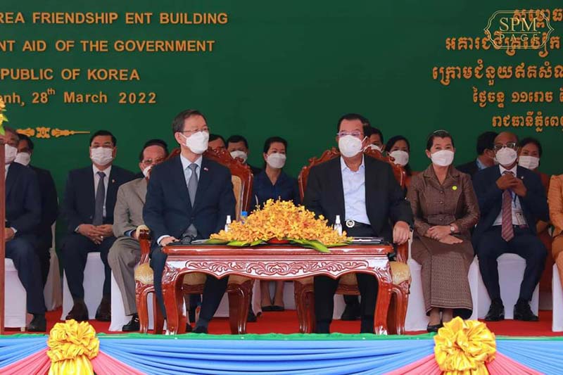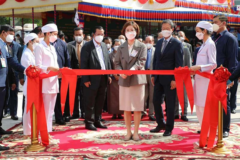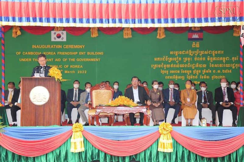 ភ្នំពេញ៖នៅព្រឹកថ្ងៃ ទី ២៨ ខែមីនា ឆ្នាំ២០២២នេះ សម្ដេចអគ្គមហាសេនាបតីតេជោ ហ៊ុន សែន នាយករដ្ឋមន្រ្តីនៃព្រះរាជាណាចក្រកម្ពុជា និងឯកឧត្តម Park Heung kyeong ឯកអគ្គរដ្ឋទូតកូរ៉េប្រចាំនៅកម្ពុជា បានអញ្ជើញជាអធិបតីភាពដ៏ខ្ពង់ខ្ពស់សម្ពោធដាក់ឱ្យប្រើប្រាស់ជាផ្លូវការ អគារមជ្ឈមណ្ឌលត្រចៀក ច្រមុះ បំពង់ក នៃមនី្ទរពេទ្យព្រះអង្គឌួង។