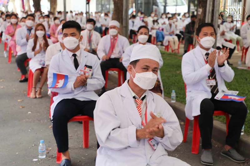 ទាក់ទងទៅនឹងស្ថានភាពជំងឺកូវីដ-១៩នៅកម្ពុជា សម្តេចតេជោបានថ្លែងអំណរគុណដល់ថ្នាក់ដឹកនាំក្រសួងសុខាភិបាល និងគ្រូពេទ្យនៅទូទាំងប្រទេស ដែលបានប្រឹងប្រែងជំនះការរីករាលដាលជំងឺកូវីដ-១៩ រយៈពេល២ឆ្នាំកន្លងទៅនេះ។ សម្តេចតេជោបានថ្លែងថា វេលាពេលនេះកាលពីឆ្នាំ២០២១ គឺជាពេលដ៏លំបាកសម្រាប់កម្ពុជា ដោយសារការឆ្លងជំងឺកូវីដ-១៩មានការផ្ទុះខ្លាំង ជាពិសេសនៅក្នុងព្រឹត្តិការណ៍សហគមន៍២០ កុម្ភៈ ដែលពេលនោះមានមនុស្សស្លាប់ និងមានអ្នកសម្រាកនៅមន្ទីពេទ្យជាបន្តបន្ទាប់ តែឆ្នាំនេះយើងមានស្ថានភាពល្អប្រសើរ ទាំងនេះដោយសារតែយុទ្ធសាស្ត្រនៃការចាក់ស្រោចវ៉ាក់សាំងរបស់យើងបានទាន់សភាពការណ៍។ តែទោះជាយ៉ាងណាក៏ដោយ សម្ដេចតេជោនៅតែបន្តអំពាវនាវឲ្យបងប្អូនប្រជាពរដ្ឋទាំងអស់មេត្តាយកចិត្តទុកដាក់ការពារការឆ្លងជំងឺកូវីដ-១៩ ជាពិសេសអនុវត្តវិធានការ ៣កុំ ៣ការពារ ឲ្យបានខ្ជាប់ខ្ជួនជានិច្ច។ សម្តេចតេជោ ហ៊ុន សែន បន្តអំពាវនាវដល់ក្រុមគ្រូពេទ្យយកចិត្តទុកដាក់លើសុខុមាលភាពរបស់ប្រជាពលរដ្ឋ។ មានមន្ទីរពេទ្យល្អ បរិក្ខារល្អ ជារឿងល្អមួយទៅហើយ ប៉ុន្តែអ្វីកាន់តែល្អទៀត គឺការយកចិត្តទុកដាក់ និងមានក្រមសីលធម៌របស់គ្រូពេទ្យចំពោះអ្នកជំងឺ។