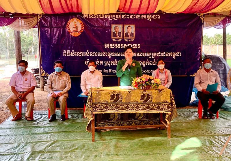 (កំពង់ធំ): លោកជំទាវ ឃួន ឃុនឌី សមាជិកព្រឹទ្ធសភានិងជាប្រធានក្រុមការងារចុះមូលដ្ឋានស្រុកកំពង់ស្វាយបានថ្លែងថាការមករួមរស់ជាមួយគណបក្សប្រជាជនរបស់បងប្អូននៅពេលនេះគឺមិនមានការបង្ខិតបង្ខំឡើយ ។ លោកជំទាវបានថ្លែងក្នុងពិធីជួបសំណេះសំណាលជាមួយសមាជិកគណបក្សប្រជាជនម្ពុជានិងប្រកាសបញ្ចូលសមាជិកបក្សចំនួន២០២នាក់ ស្រី១០៨នាក់ មកពីរភូមិចំនួន៦ ក្នុងឃុំសាន់គ ស្រុកកំពង់ស្វាយ ខេត្តកំពង់ធំ នាព្រឹកថ្ងៃទី ២៧ មិនា ឆ្នាំ២០២២ ។