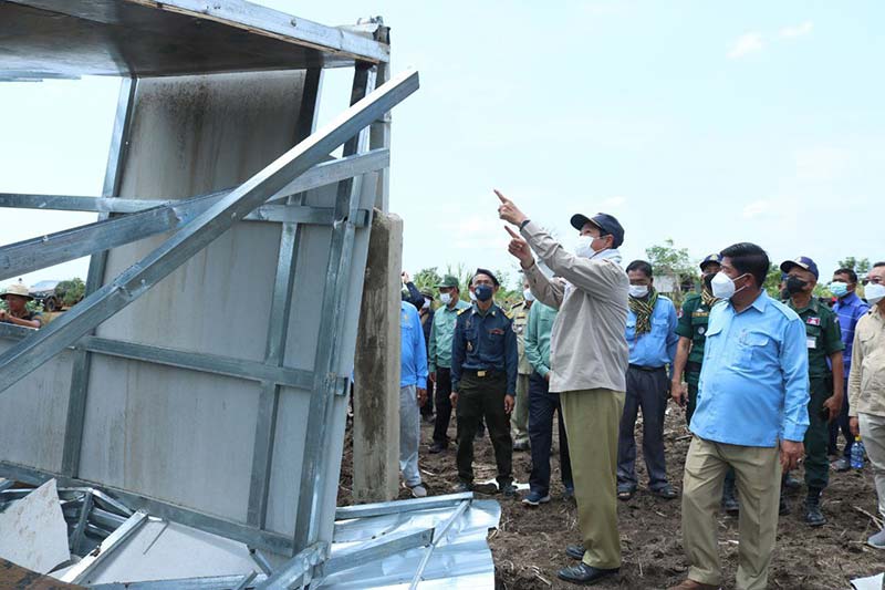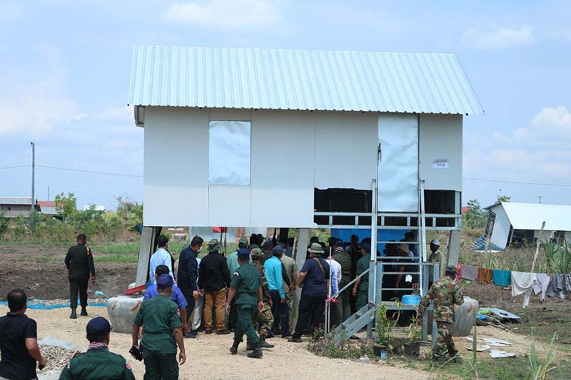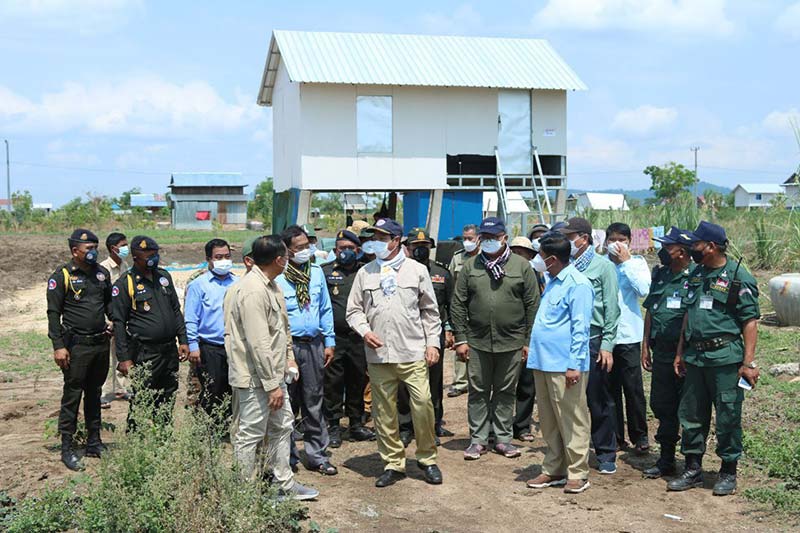 បន្ទាយមានជ័យ៖ ឯកឧត្តម ទេសរដ្ឋមន្រ្តី គន់ គីម អនុប្រធាន និងជាអគ្គលេខាធិការសមាគមអតីតយុទ្ធជនកម្ពុជា នៅព្រឹកថ្ងៃទី៣០ ខែមីនា ឆ្នាំ២០២២នេះ អញ្ជើញចុះត្រួតពិនិត្យ ផ្ទះអតីតយុទ្ធដែលរងគ្រោះដោយខ្យល់កន្រ្តាក់នៅដីសម្បទានសង្គមកិច្ច មជ្ឈមណ្ឌលតេជោសន្តិភាព តំបន់ការ៉េ២ ចំនួន១០៧គ្រួសារនៅឃុំប៉ោយចារ ស្រុកភ្នំស្រុក។