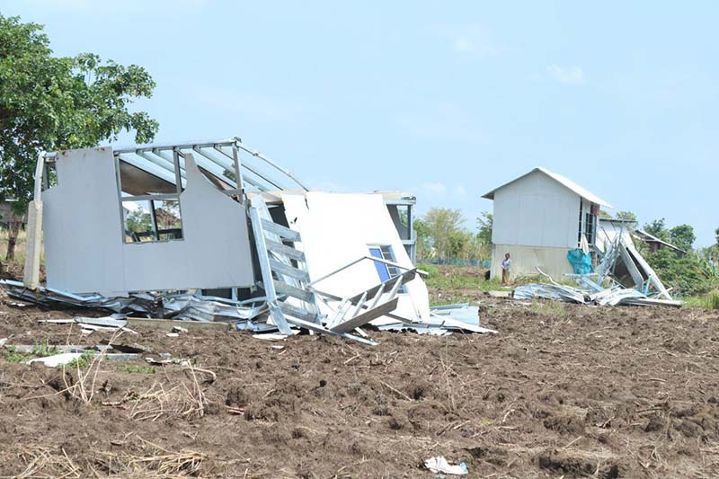 គួរជំរាបជូនថា៖ ភ្លៀងលាយខ្យល់កន្ត្រាក់ដែលបណ្តាលឲ្យខូចខាត និងប៉ះពាល់ផ្ទះសំបែងរបស់អតីតយុទ្ធជន នៅដីសម្បទានសង្គមកិច្ច មជ្ឈមណ្ឌលតេជោសន្តិភាព តំបន់ការ៉េ២ ចំនួន១០៧គ្រួសារនេះ កើតឡើង កាលពីល្ងាចថ្ងៃទី២៧ ខែមីនា ឆ្នាំ២០២២ ដែលធ្វើឲ្យផ្ទះ ៣៩ខ្នងខូចខាតទាំងស្រុង និងប៉ះពាល់ស្រាលប៉ើងដំបូលមានចំនួន៦៨ខ្នង៕ (សៅនៅ)