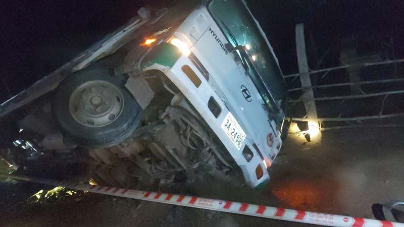ហើតមូលហេតុ: អ្នកបេីកបរ រថយន្ត៥តោនវ៉ា ជែង ក្នុង ស្ថានភាព គ្រោះថ្នាក់ បណ្ដាល ឲ្យ រថយន្ត ផ្អៀង ធ្លាក់ ថ្នល់មានអ្នករងដូច្នេះ ។
