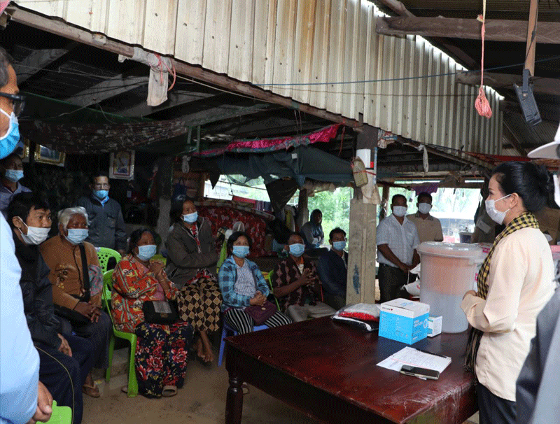 ជាក់ស្ដែង ដូចដែលយើងគ្រប់គ្នាបានឃើញស្រាប់ថា ប្រទេសកម្ពុជាបច្ចុប្បន្ននេះកំពុងមានការអភិវឌ្ឍន៍រីកចំរើនលើគ្រប់វិស័យទាំងផ្នែកពុទ្ធចក្រ និងអាណាចក្រ។ ស្ពាន ថ្នល់ សាលារៀន មន្ទីរពេទ្យ វត្តអារាម ប្រព័ន្ធធារាសាស្រ្ត ប្រព័ន្ធអគ្គិសនី ប្រព័ន្ធទឹកស្អាត មានការអភិវឌ្ឍន៍រីកចំរើននៅគ្រប់ទីកន្លែង តាំងពីទីប្រជុំជន រហូតដល់ទីជនបទដាច់ស្រយាល។ លោកជំទាវ ក៏បានមានប្រសាសន៍ណែនាំ ផ្តាំផ្ញើដល់លោកមេភូមិ អនុភូមិ និងសមាជិកភូមិទាំងអស់ ត្រូវយកចិត្តទុកដាក់ក្តាប់ឱ្យបានពីស្ថានភាពរស់នៅរបស់បងប្អូនប្រជាពលរដ្ឋនៅក្នុងភូមិ នឹងត្រូវធ្វើរបាយការណ៍ឱ្យបានទៀងទាត់ ច្បាស់លាស់ មកកាន់ថ្នាក់លើរបស់ខ្លួន។ បញ្ហាដែលលោកមេភូមិ អនុភូមិ និងសមាជិកភូមិទាំងអស់ត្រូវយកចិត្តទុកដាក់នោះគឺ ទី១ ក្តាប់ឱ្យបានពីចំនួនប្រជាពលរដ្ឋដែលធ្វើចំណាកស្រុកទៅធ្វើការនៅក្រៅប្រទេស។ ទី២ ក្តាប់ឱ្យបានពីចំនួនប្រជាពលរដ្ឋដែលមានជីវភាពខ្វះខាតពិតប្រាកដនៅក្នុងភូមិ ដើម្បីធ្វើការផ្ដល់ជំនួយឧបត្ថម្ភដល់ពួកគាត់។ ទី៣ ក្តាប់អោយបានពីចំនួនប្រជាពលរដ្ឋដែលមានឈ្មោះក្នុងបញ្ជីឈ្មោះបោះឆ្នោត និងជំរុញណែនាំឲ្យពួកគាត់ត្រៀមទៅបោះឆ្នោតឲ្យបានគ្រប់គ្នា។ ទី៤ ចូលរួមឱ្យបានសកម្មក្នុងការអនុវត្តគោលនយោបាយភូមិឃុំមានសុវត្ថិភាព របស់រាជរដ្ឋាភិបាល ដូចជាការងារទប់ស្កាត់ការលេងល្បែងស៊ីសងគ្រប់ប្រភេទនៅក្នុងភូមិ ការងារជួញដូរ ការប្រើប្រាស់គ្រឿងញៀននៅក្នុងភូមិ ការចូលរួមអនុវត្តច្បាប់ចរាចរណ៍ឲ្យបានល្អប្រសើរ និងការអប់រំណែនាំកូនចៅឱ្យប្រព្រឹត្តនូវអំពើល្អ កុំឱ្យមានក្មេងទំនើងក្នុងភូមិជាដើម៕ ដោយ ៖ នីយ៉ា