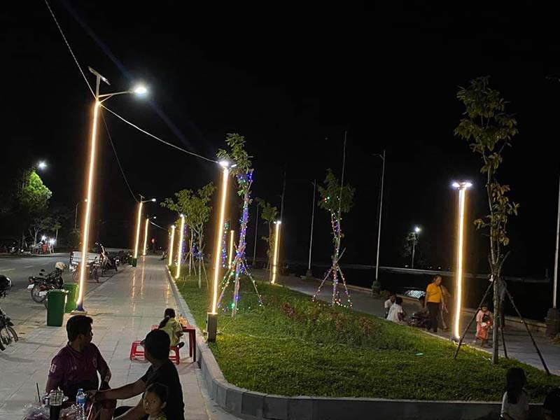 មានប្រសាសន៍នាឱកាសនោះឯកឧត្តមអភិបាលខេត្តបានថ្លែងនូវការអបអរសាទរចំពោះសមិទ្ធផលថ្មី ជាច្រាំងទន្លេ សួនច្បារ អមដោយឧបករណ៍ហាត់ប្រាណ និងក្លោងទ្វារ ដែលត្រូវដាក់សម្ពោធឲ្យប្រើប្រាស់ជាផ្លូវការរួមគ្នានៅថ្ងៃនេះ ដែលប្រវែង ៩៦៧ម៉ែត្រ សួនច្បារ ចំនួន៧សួន ទីតាំងដាក់ឧបករណ៍ហាត់ប្រាណ ចំនួន៣កន្លែង (មានឧបករណ៍ហាត់ប្រាណ ៦០ឈុត) បង្គោលភ្លើង(អំពូលសូឡា) ៨៤បង្គោល ដាំដើមឈើ ៨២ដើម ទីតាំងរៀបចំវេទិកាប្រណាំងទូក ១កន្លែង ក្លោងទ្វារ ២អមសងខាង។