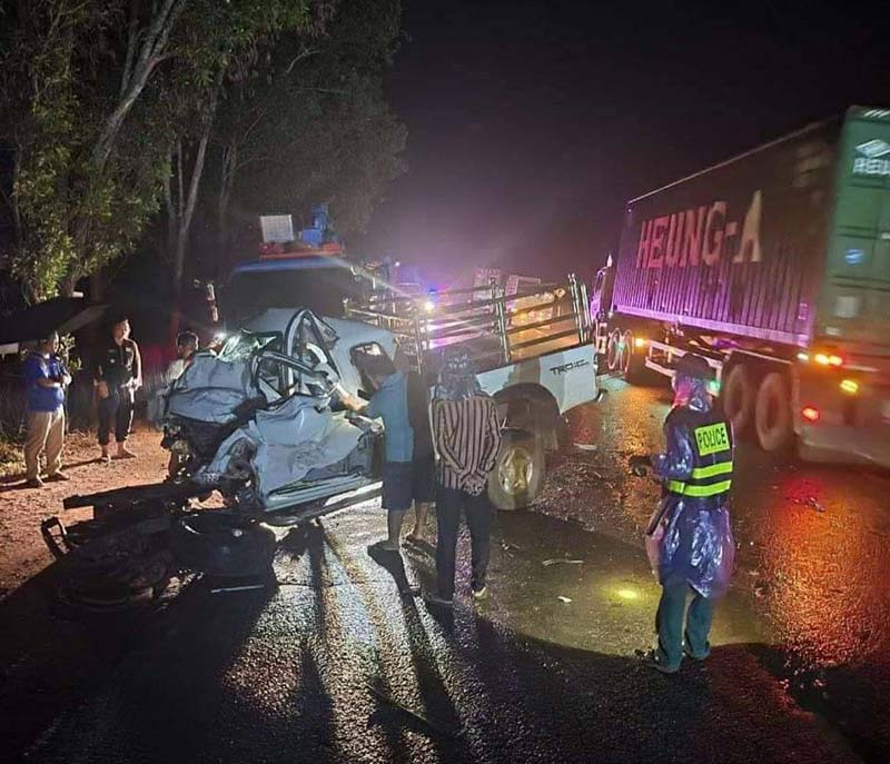 ខេត្តព្រះសីហនុ៖ យ៉ាងហោចណាស់ក៏មានមនុស្សម្នាក់បានស្លាប់ នៅក្នុងករណីគ្រោះថ្នាក់ចរាចរណ៍រវាងរថយន្តពីរគ្រឿងបុកគ្នាពេញទំហឹង។ករណីនេះបានកើតឡើងនៅ ថ្ងៃ១៩ ខែមេសា ឆ្នាំ២០២២ វេលាម៉ោង០០ និង៣៥នាទី នៅចំណុចលើផ្លូវជាតិលេខ៤ ចន្លោះគីឡូម៉ែត្រលេខ១៥០-១៥១ ស្ថិតនៅក្នុងភូមិស្ទឹងឆាយខាងជេង ឃុំស្ទឹងឆាយ ស្រុកកំពង់សីលា ខេត្តព្រះសីហនុ មាន ហេតុការណ៍នេះកើតឡើងដោយរថយន្ត១គ្រឿងម៉ាក TACOMAពណ៌ស ពាក់ផ្លាកលេខ ភ្នំពេញ2AF-9635 ទិសដៅពីរភ្នំពេញទៅខេត្តព្រះសីហនុលុះមកដល់ចំនុចខាងលេីក៏បានបុកជាមួយរថយន្ត ម៉ាកFUSO ពណ៍ក្រហម ស សណ្តោងរ៉ឺម៉កកុងទីន័រ ពាក់ផ្លាកលេខ ភ្នំពេញ 3D -2162 ទិញដៅពីរខេត្តព្រះសីហនុទៅភ្នំពេញ។ ហេតុការណ៍ខាងលើនេះបណ្តាលអោយបើកបររថយន្តTACOMA ឈ្មោះ លន់ ស៊ាងលេង ភេទប្រុស អាយុ35ឆ្នាំមានទីលំនៅភូមិសុវណ្ណាបៃតងឃុំកណ្តោលស្រុកបុទុមសាគរខេត្តកោះកុង ស្លាប់ភ្លាមៗនៅនិងកន្លែងកើតហេតុ។