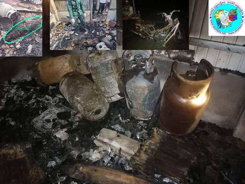 ខេត្តស្វាយរៀង៖បុរសម្នាក់បានស្លាប់នៅក្នុងអណ្តាតភ្លើងយ៉ាងអាណោចអាធ័មខណៈដែលកំពុងតែបញ្ចូលហ្គាស់ចូលកំប៉ុងបណ្តាលឲ្យផ្ទុះឆាបឆេះផ្ទះនិងឆេះខ្លួនឯង។