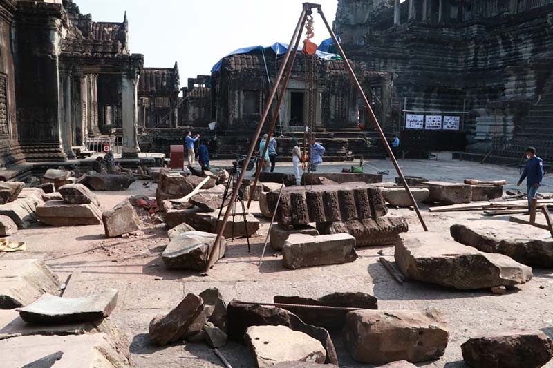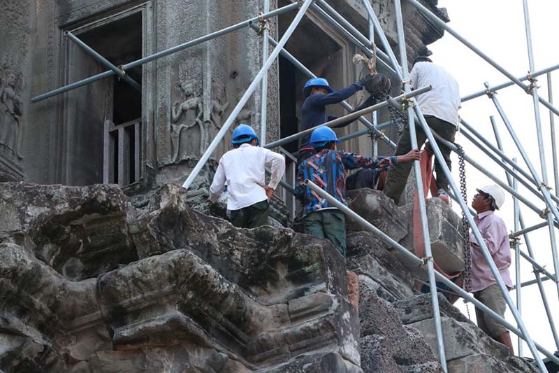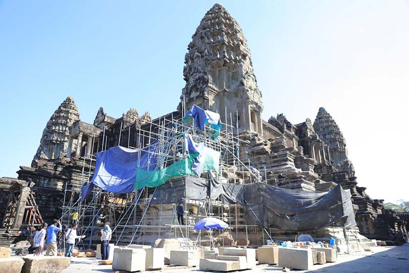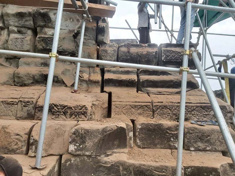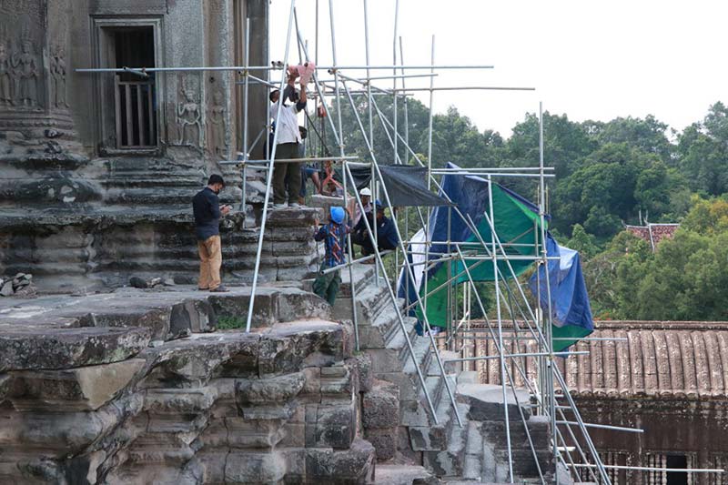 សៀមរាប៖អ្នកជំនាញឱ្យដឹងថា តួប្រាង្គបាកាណនៃប្រាសាទអង្គរវត្តឬគេអាចហៅថា«រួតបាកាណ»ពាក់កណ្ដាលនៃផ្នែកខាងលិចគ្រោងនឹង បញ្ចប់ការជួសជុលចុងខែមេសាឆ្នាំនេះ ហើយបន្ទាប់ពីការជួសជុលរួចរាល់ កាន់តែមានភាពរឹងមាំមួយកំរឹតទៀត។
