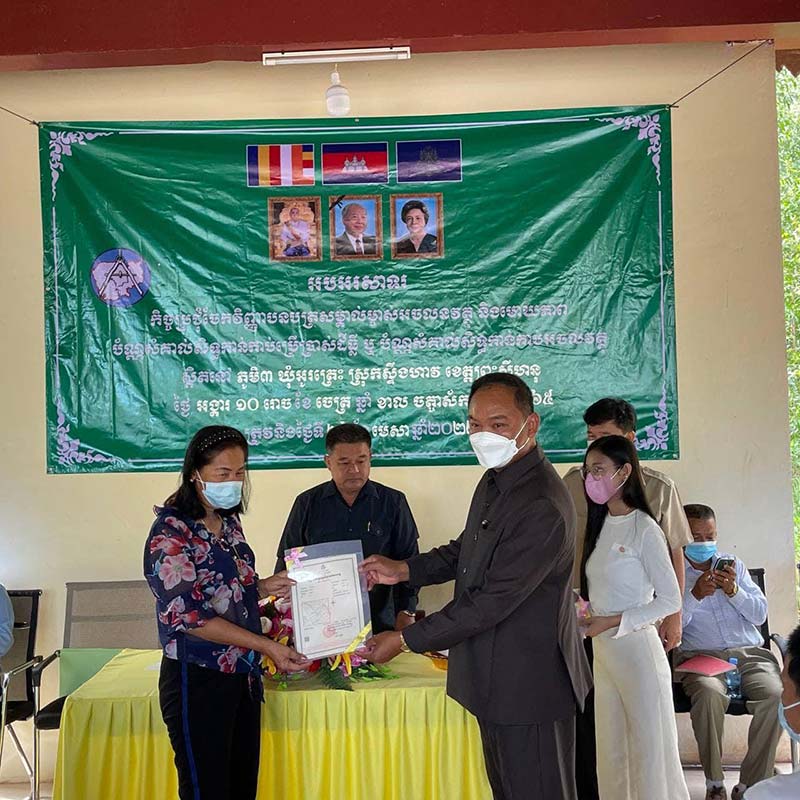 លោក លៀម សូដា អភិបាលរងខេត្តព្រះសីហនុ មានប្រសាសន៍ថាដីគឺជាអាយុជីវិត មានតែដី គ្មានបណ្ណ សម្គាល់ គឺមិនប្រសើរឡើយ នៅពេលនេះបងប្អូនមានបណ្ណសំគាល់ដីធ្លីរបស់ខ្លួនហើយ សូមបងប្អូនថែរក្សាវាឲ្យបានល្អ ព្រោះវាផ្តល់នូវសារៈប្រយោជន៍ដល់បងប្អូន ដោយធានាបាននូវភាពកក់ក្តៅ សុវត្ថិភាពដីធ្លី និងសិទ្ធិកាន់កាប់ដីធ្លីពេញលេញ ហើយវិញ្ញាបនប័ត្រសំគាល់ម្ចាស់អចលនៈវត្ថុទៀតសោត មានសារៈសំខាន់សំរាប់ធ្វើជាភស្តុតាង នូវការកាន់កាប់ដីធ្លីរបស់ខ្លួន និងចៀសវាងបាននូវការរំលោភបំពានលើដីធ្លី។ ប័ណ្ណនេះ បងប្អូនអាច យកទៅដាក់ធនាគារ ដើម្បីយកថវិកា មកប្រកបរបរអាជីវកម្មផ្សេងៗបានថែមទៀត។