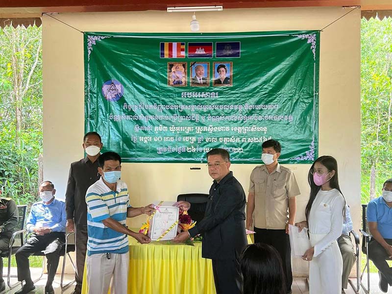 ស្រុងស្ទឹងហាវ៖ នៅព្រឹកថ្ងៃទី២៦ ខែមេសា ឆ្នាំ២០២២ លោក ចេង ស្រុង ប្រធានមន្ទីររៀបចំដែនដី នគរូបនីយកម្ម សំណង់ និងសុរិយោដីខេត្តព្រះសីហនុ សហការជាមួយរដ្ឋបាលខេត្តព្រះសីហនុ ក្រោមអធិបតីភាពលោក លៀម សូដា អភិបាលរងខេត្តព្រះសីហនុ បានចុះផ្ដល់វិញ្ញាបនបត្រសម្គាល់ម្ចាស់អចលនវត្ថុ ជូនដល់ប្រជាពលរដ្ឋស្ថិតនៅភូមិ៣ ឃុំអូត្រេះ ស្រុកស្ទឹងហាវ ខេត្តព្រះសីហនុ ដែលមានការចូលរួមពីលោកអភិបាលស្រុក ក្រុមប្រឹក្សាស្រុក មេឃុំ មេភូមិ មន្រី្តពាក់ព័ន្ធ និងបងប្អូនប្រជាពលរដ្ឋ នៅសាលាឃុំអូត្រេះ ។
