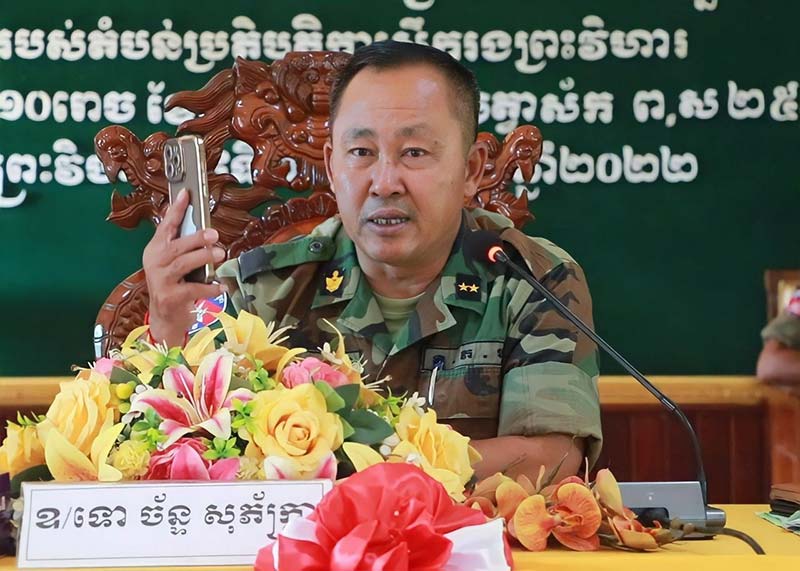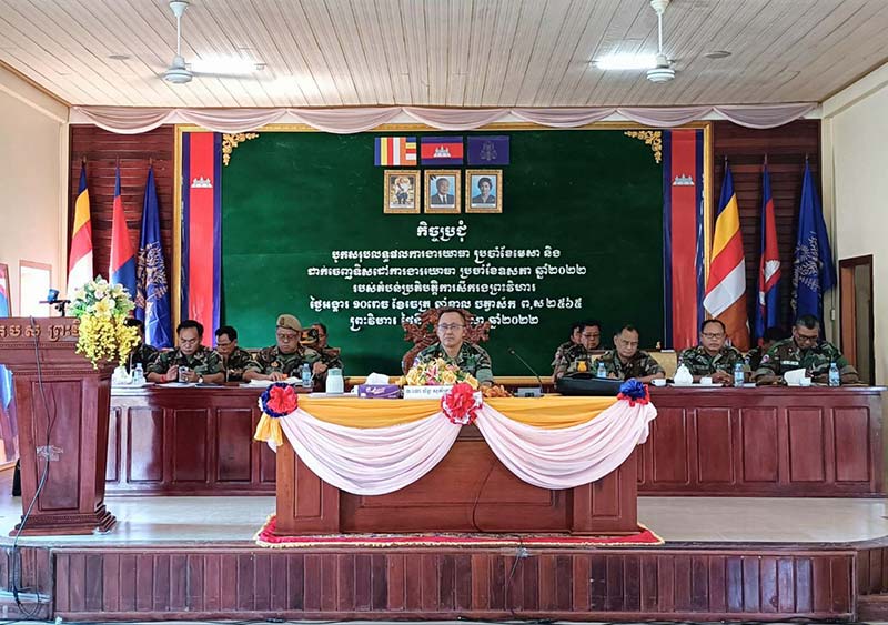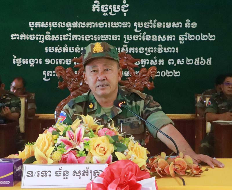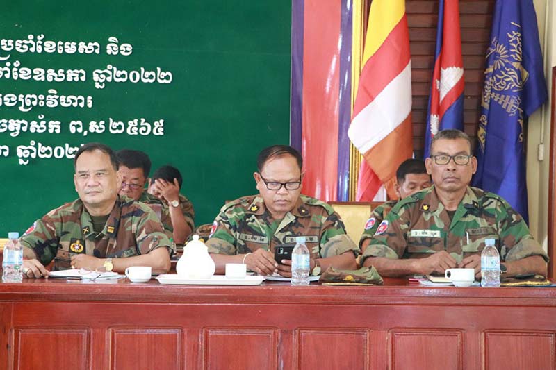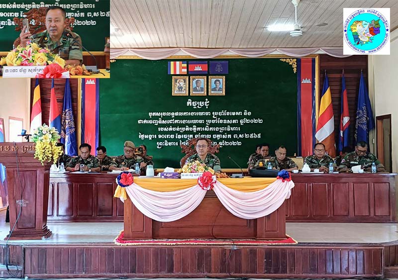 ព្រះវិហារៈ នារសៀលថ្ងៃទី ២៦ ខែមេសា ឆ្នាំ២០២២ ឯកឧត្ដម ឧត្ដមសេនីយ៍ទោ ច័ន្ទ សុភ័ក្ដ្រា មេបញ្ជាការតំបន់ប្រតិបត្ដិការសឹករងព្រះវិហារ បានជាគណៈអធិបតី ក្នុងកិច្ចប្រជុំ បូកសរុបលទ្ធផលការងារយោធា ប្រចាំខែមេសា និងទិសដៅការងារយោធា ប្រចាំខែឧសភា ឆ្នាំ២០២២ របស់ទីបញ្ជាការតំបន់ប្រតិបត្ដិការសឹករងព្រះវិហារ ។