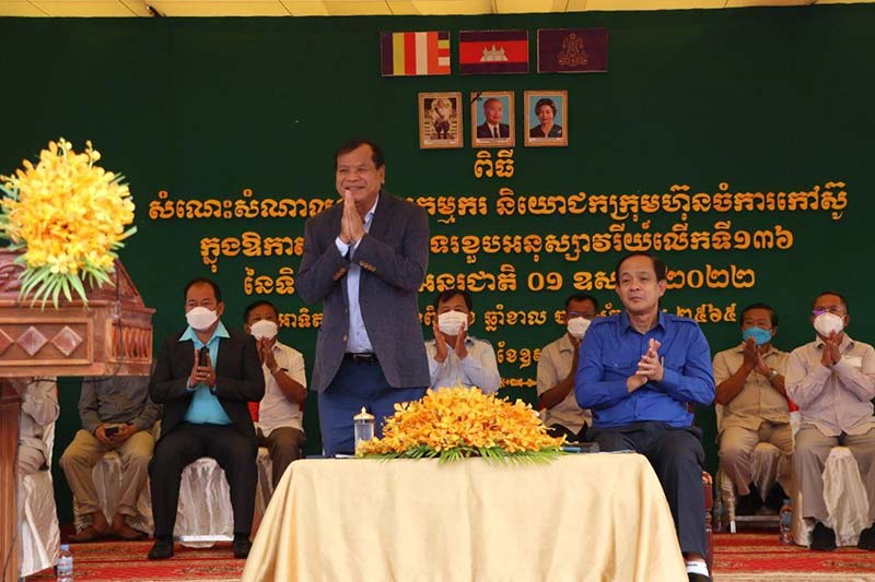 ឆ្លៀតក្នុងឱកាសនោះ ឯកឧត្តម ថោង ខុន ក៏បានពាំនាំនូវក្តីនឹករលឹក និងផ្តាំផ្ញើការសួរសុខទុក្ខ និងស្រឡាញ់រាប់អានដ៏ជ្រាលជ្រៅបំផុតរបស់សម្តេចតេជោ ហ៊ុន សែន នាយករដ្ឋមន្ត្រីនៃកម្ពុជា និង សម្តេចកិត្តិព្រឹទ្ធបណ្ឌិត ជូនដល់បងប្អូនកម្មករ និយោជិតនៃក្រុមហ៊ុនចំការកៅស៊ូទាំងអស់។ ជារៀងរាល់ឆ្នាំ រាជរដ្ឋាភិបាលកម្ពុជាតែងតែបានប្រារព្ធទិវាពលកម្មអន្តរជាតិ ១ ឧសភានេះ និងបានចេញសារាចរណែនាំ និងសារលិខិត ដើម្បីបំផុសលើកទឹកចិត្តឱ្យក្រសួង ស្ថាប័នពាក់ព័ន្ធ រោងចក្រ សហគ្រាសនានា រៀបចំខួបអនុស្សាវរីយលើកទី១៣៦ ទិវាពលកម្មអន្តរជាតិ ១ ឧសភា សំដៅបង្កបរិយាកាសសប្បាយរីករាយ សាមគ្គីភាព និងភាតរភាព ក្នុងទ្រង់ទ្រាយតូច និងតាមស្ថានភាពជាក់ស្តែង។