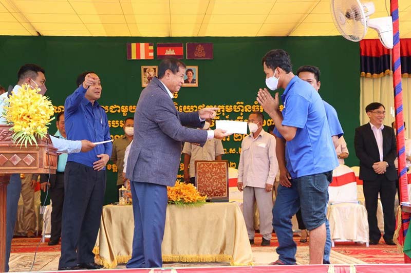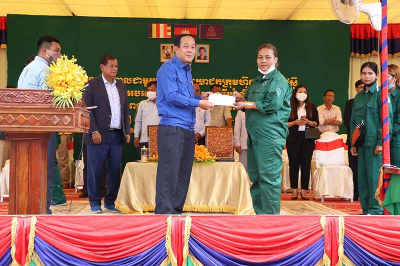 កំពង់ធំ៖ ឯកឧត្តម ថោង ខុន រដ្ឋមន្រ្តីក្រសួងទេសចរណ៍ និងជាប្រធានក្រុមការងាររាជរដ្ឋាភិបាលចុះមូលដ្ឋានខេត្តកំពង់ធំ នាព្រឹកថ្ងៃទី០១ ខែឧសភា ឆ្នាំ២០២២នេះ បានដឹកនាំក្រុមការងារ ចុះជួបសំណេះសំណាល និងសួរសុខទុក្ខកម្មករ និយោជិត ក្រុមហ៊ុនតានបៀនកំពង់ធំអភិវឌ្ឍន៍កៅស៊ូ ស្ថិតក្នុងឃុំក្រយា ស្រុកសន្ទុក ខេត្តកំពង់ធំ និងដើម្បីជាការអបអរសាទរក្នុងឱកាសខួបអនុស្សាវរីយ៍លើកទី១៣៦ ទិវាពលកម្មអន្តរជាតិ១ ឧសភា ២០២២ ក្រោមប្រធានបទ «សន្តិភាព សុខភាព និងសន្តិសុខការងារ»។