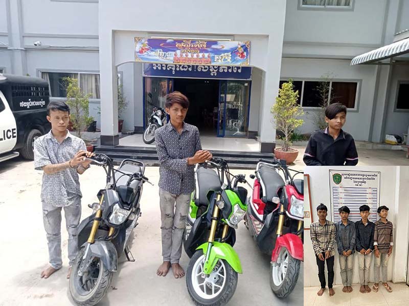 លោកវរសេនីយ៍ឯក សៅ សារឿន អធិការនគរបាលក្រុងប៉ោយប៉ែតបានប្រាប់ថា៖ ជនសង្ស័យទាំងបួននាក់ខាងលើនេះ ត្រូវបានកម្លាំងចុះស្រាវជ្រាវឃាត់ខ្លួនជាបន្តបន្ទាប់នៅថ្ងៃទី29.30 ខែមេសា ឆ្នាំ2022 ក្រោយពីធ្វើសកម្មភាពលួចកាច់ករម៉ូតូរបស់ជនរងគ្រោះ ឈ្មោះ មូល រិទ្ធី ភេទប្រុស អាយុ27ឆ្នាំ ជនជាតិខ្មែរ ម៉ោង2,30នាទីទាបភ្លឺ ថ្ងៃទី28ខែមេសា ជនរងគ្រោះបានចតម៉ូតូទុកចោលមុខបន្ទប់ភ្លៀវ រួចដើរយកបាយអោយភ្ញៀវដែលកម្មង់ ប្រហែល5នាទី នៅម្ដុំកាស៊ីណូទីហាវ ក្នុងភូមិក្បាលស្ពាន2 សង្កាត់ប៉ោយប៉ែត ស្រាប់តែបាត់ម៉ូតូ ទើបដាក់ពាក្យបណ្តឹងឲ្យសមត្ថកិច្ចនគរបាលជួយរកម៉ូតូមកវិញ។