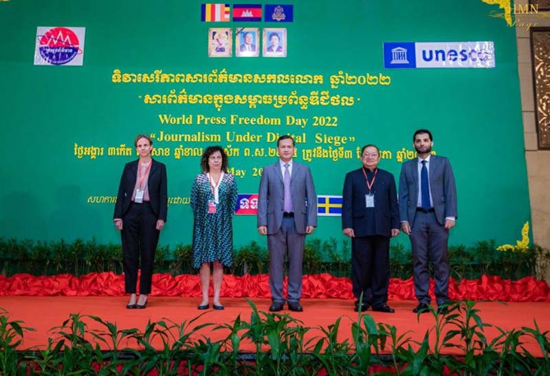 ភ្នំពេញៈ ក្នុងឱកាសអញ្ជើញជាអធិបតីភាពនៃការប្រារព្ធពិធីអបអរសាទរទិវាសេរីភាពសារព័ត៌មាន ៣ ឧសភា លោកបណ្ឌិត ហ៊ុន ម៉ាណែត បានថ្លែងថា អ្នកសារព័ត៌មាន ត្រូវបំពេញការងារក្នុងសិរីភាពសារព័ត៌មាន ដោយគោរពក្រមសីលធម៌វិជ្ជាជីវៈ និងគោរពច្បាប់ស្តីពីសារព័ត៌មាន ក៏ដូចជាច្បាប់នានារបស់ប្រទេស ដើម្បីទទួលបានទំនុកចិត្ត និងការគោរពស្រឡាញ់ពីសាធារណជន។