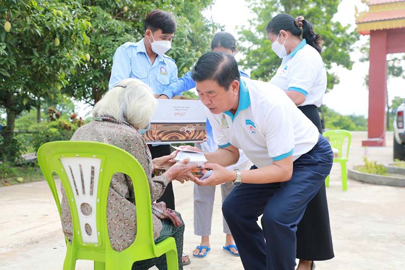 ឯកឧត្តម បាននាំមកនូវបណ្តាំផ្ញើសាកសួរសុខទុក្ខពីសំណាក់ លោកជំទាវ បានស្រីមុំ ប្រធានមូលនិធិចាស់ជរាខេត្តប៉ៃលិន និងឯកឧត្តម អុី ឈាន ប្រធានក្រុមការងាររាជរដ្ឋាភិបាលចុះមូលដ្ឋានខេត្តប៉ៃលិន ជូនដល់លោកយាយ លោកតាចាស់ជរាទាំងអស់ ដោយជានិច្ចកាលលោកជំទាវ និងឯកឧត្តម តែងតែគិតគូពីសុខទុក្ខរបស់ប្រជាពលរដ្ឋគ្រប់រូប គ្រប់កាលៈទេសៈ និងគ្រប់ទីកន្លែងនៅទូទាំងខេត្តប៉ៃលិន។