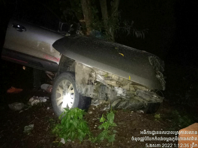 នគរបាលអធិការដ្ឋានស្រុកសេសានអោយដឹងថា÷ រថយន្ត ដែល ជួប គ្រោះថ្នាក់ ខាងលើនេះ ម៉ាក ហ្វ ដ ពាក់ ស្លាក លេខ រតន:គីរី ២B.៩៩៩៨ ពណ៌ ទឹកមាស បើកបរ ពី ទិស ខាងលិច ទៅ ទិសខាង