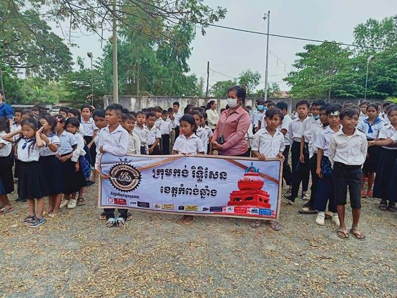 ខេត្តកំពង់ឆ្នាំង: ប្អូនៗសិស្សានុសិស្សនៅសាលាបឋមសឹក្សាអារញ្ញចំនួន២៣១នាក់បានទទួលអំណោយជាសម្ភារះសឹក្សាពីក្រុមអ្នកធាក់កង់ស្តែនបាយមកពីក្រុងភ្នំពេញនិងក្រុមអ្នកធាក់កង់រិទ្ធិសែនខេត្តកំពង់ឆ្នាំងជាច្រើនអ្នកផងដែរ ។