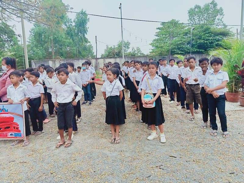 ការចុះនាំយកសម្ភារះសឹក្សាមកចែកជូនប្អូនៗសិស្សានុសិស្សនេះធ្វើឡើងនៅថ្ងៃទី៦គម្ភះ២០២១នៅក្នុងសាលាបឋមសឹក្សាអារញ្ញដែលស្ថិតនៅក្នុងភូមិដ្រែព្រ៏ងសង្កាត់កំពង់ឆ្នាំងក្រុងកំពង់ឆ្នាំងដោយមានការចូលរួមពីអភិបាលក្រុងកំពង់ឆ្នាំងលោក.យិនសាវ៉េន.និងប្រធានក្រុមអ្នកធាក់កងស្តែនបាយមកពីក្រុងភ្នំពេញលោក ថុនវណ្ណារិទ្ធនិងប្រធានក្រុមអ្នកធាក់កង់រិទ្ធិសែនដឹកនាំដោយលោក ហង្សសុជាតិ.ព្រះសង្ឃវត្តអារញ្ញព្រះអង្គព្រះនាម កងសុផល .ក្រុមអចលនទ្រព្យខេត្តកំពង់ឆ្នាំងនិង.ក្រុមមនុស្សធម៌មួយកក់ក្តៅរួមនិងអាជ្ញាធមូលដ្ឋានសង្កាត់កំពង់ឆ្នាំងលោកគ្រូអ្នកគ្រូសិស្សានុសិស្សចូលរួមជាច្រើនអ្នកផងដែរ ។ប្រធានក្រុមអ្នកធាក់កង់ស្រែនបាយលោក.ថុនវណ្ណរិទ្ធបានអោយដឹងថាក្រុមគាត់បានធ្វើដំណើរដោយធាក់កង់ពីទីក្រុងភ្នំពេញមកខេត្តកំពង់ឆ្នាំងដោយសហការគ្នាជាមួយនិងក្រុមអ្នកធាក់កង់រិទ្ធិសែនខេត្តកំពង់ឆ្នាំងដើម្បីចូលរួមនាំយកអំណោយមកចែកជូនប្អូនៗសិស្សានុសិស្សដែលមានកាខ្វះខាតលើសម្ភារះសឹក្សា ។
