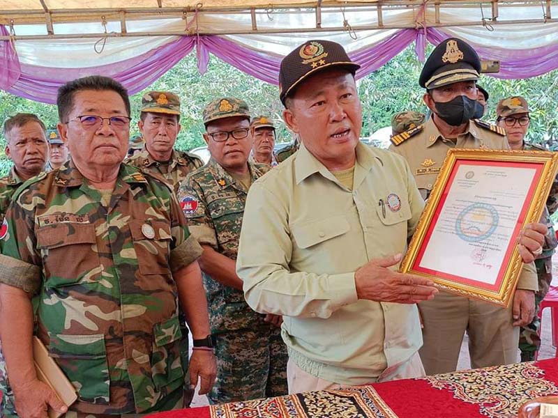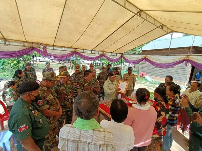 ព្រះវិហារៈ នៅរសៀលថ្ងៃទី១០ ខែឧសភា ឆ្នាំ២០២២ ឧត្តមសេនីយ៍ទោ ច័ន្ទ សុភ័ក្រ្តា មេបញ្ជាការតំបន់ប្រតិបត្តិការសឹករងខេត្ត និងជាប្រធានសមាគមអតីតយុទ្ធជនកម្ពុជា ខេត្តព្រះវិហារ បានដឹកនាំក្រុមការងារសមសគមនាំយកថវិកាបេឡាមរណសង្គ្រោះចំនួន ៤លានរៀល ប្រគល់ជូនក្រុមគ្រួសារសពអតីតយុទ្ធជនឈ្មោះ ប៊ិន ឈួរ ភេទប្រុស អាយុ៦៥ឆ្នាំ មុខសញ្ញានិវត្តជន ដែលបានទទួលមរណៈភាពកាលពីថ្ងៃទី០៤ ខែឧសភា ឆ្នាំ២០២២ ស្ថិតនៅភូមិគូលែនជើង ឃុំគូលែនជើង ស្រុកគូលែន ខេត្តព្រះវិហារដោយរោគា។