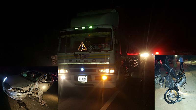 ប្រភពដដែលបានបន្តទៀតថាៈរថយន្ដកុងតឺន័រម៉ាក្ស Fuso ពណ៏ ស ពាក់ផ្លាកលេខ ភ្នំពេញ ៣E ៤៥២៨ សឺមីរុឺម៉ក ពាក់ស្លាកលេខ ភ្នំពេញ ៤A ៥៥១២ អ្នកបើកបរ មមិនស្គាល់អត្តសញ្ញាណ (បានរត់គេចពីកន្លែងកើតហេតុ) បើកបរពីកើតទៅលិច រថយន្ដគ្មានខូចខាត ។