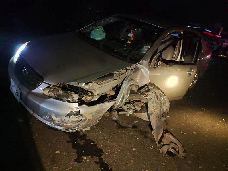 ចំណែករថយន្ដមួយគ្រឿងទៀតម៉ាកCorola ពណ៏ ទឹកប្រាក់ ពាក់ស្លាកលេខ ភ្នំពេញ ២K ៤៨៩៧ បើកបរដោយឈ្មោះ សួស តាក់ច័ន្ទធីតា ភេទ ប្រុស អាយុ ២៩ ឆ្នាំ មុខរបរ មិនស្គាល់ រស់នៅភូមិ ព្រៃរំដួល ឃុំ ប្រសូត្រ ស្រុក ស្វាយទាប ខេត្ត ស្វាយរៀង បើកបរពីលិចទៅកើត រថយន្ដខូចខាតធ្ងន់ (អ្នកបើកបររត់គេចពីកន្លែងកើតហេតុ) ។