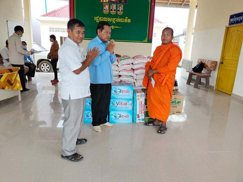 បើតាមព្រះតេជគណព្រះនាម ភួន សុភ័ណ្ឌ គង់នៅវត្តវត្តបុព្វារាមហៅវត្តព្រៃយាយបានមានសង្ឃដិការថា៖ដោយមានព្រះអង្គមានចិត្តអាណិតអាសូរ និងបានផ្តល់ទេយ្យទានមានគ្រឿងឧបភោគបរិភោគ និងថវិកាមួយចំនួនចូលរួមជាមួយដើម្បីចែកជួនដល់ពលរដ្ឋទីទាល់ក្រនៅក្នុងសង្កាត់បាវិតដើម្បីធ្វើទានជាមួយក្រុមគ្រួសារដែលទីទាល់ក្រចាស់ជរាជនពិការដែលជួបការលំបាកក្នុងជីវភាពប្រចាំនិងចូលរួមចំណែកជាមួយរាជរដ្ឋាភិបាលក្នុងការកាត់បន្ថយភាពក្រីក្ររបស់ប្រជាពលរដ្ឋ។