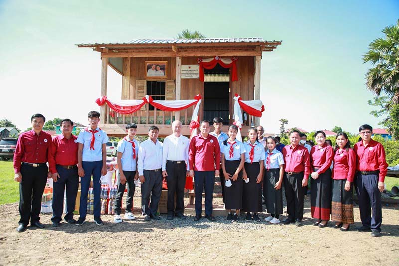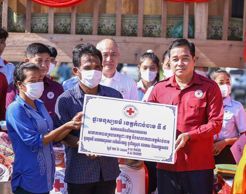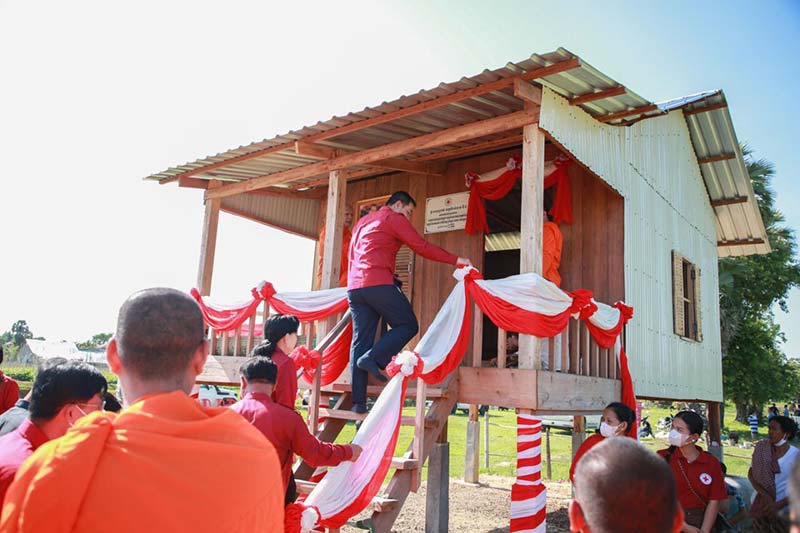 កំពង់ចាម : ឯកឧត្តម អ៊ុន ចាន់ដា អភិបាលខេត្តកំពង់ចាម និងជាប្រធានគណៈកម្មាធិការសាខា កាកបាទក្រហម ខេត្ត ដោយ មានការនិមន្ត និង អញ្ជើញចូលរួមពីព្រះមន្ត្រីសង្ឃ និង មន្ត្រី រាជការ នាព្រឹក ថ្ងៃទី២៥ ខែឧសភា ឆ្នាំ ២០២២ នេះ បានប្រគល់ផ្ទះមនុស្សធម៌ទី៩ ជូនគ្រួសារប្រជាពលរដ្ឋ ឈ្មោះ វ៉ន វុធ អាយុ ៤៦ឆ្នាំ ដែលមានជីវភាពទ័លលំបាក រស់នៅភូមិទួលវិហារ ឃុំរាយប៉ាយ ស្រុកកងមាស ។