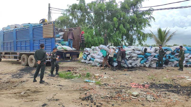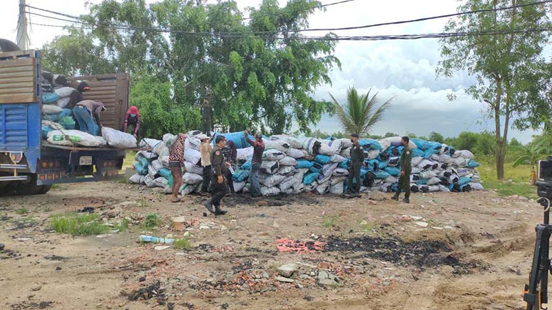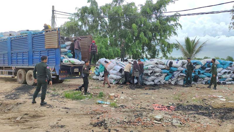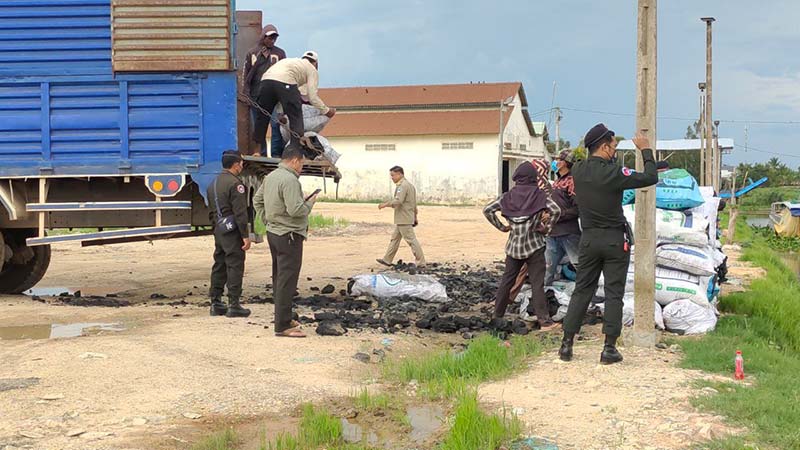 ខេត្ដស្វាយរៀង ៖នៅរសៀលថ្ងៃទី២ខែមិថុនាឆ្នាំ២០២២នេះធ្យូងចំនួនប្រហែល៥៤តោនដែលត្រូវបានឈ្មួញដឹកយកមកទម្លាក់នៅមាត់ប្រឡាយទាហានហើយត្រៀមលើកដាក់ចូលក្នុងទូកកាណូតវៀតណាមដើម្បីឆ្លងដែនទៅប្រទេសវៀតណាមតែចេញមិនរួចនោះត្រូវបានកំលាំងសមត្ថកិច្ចចម្រុះក្របួចទាំងអស់ ។