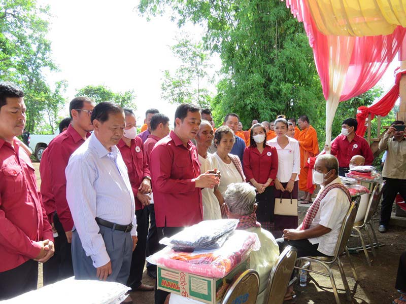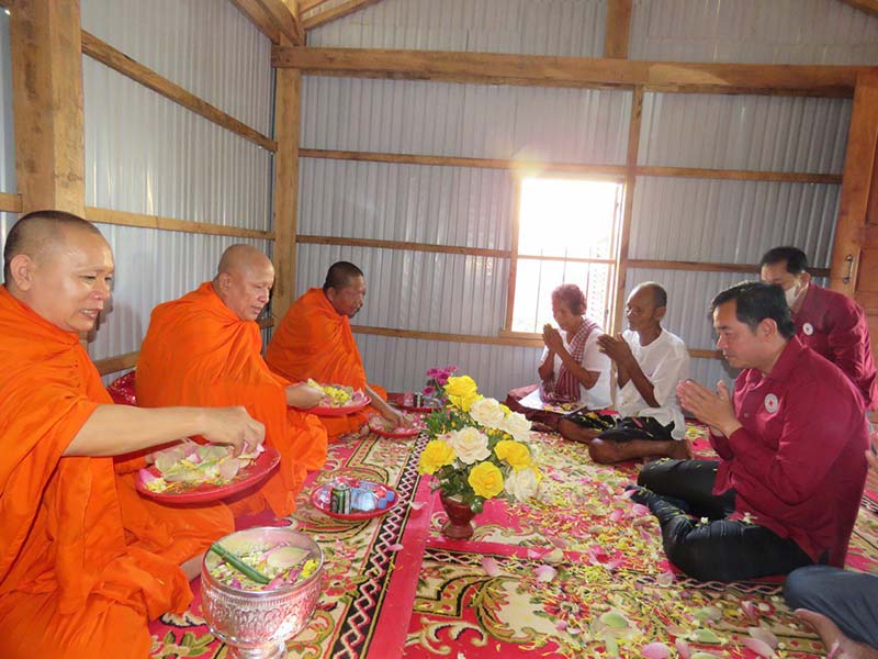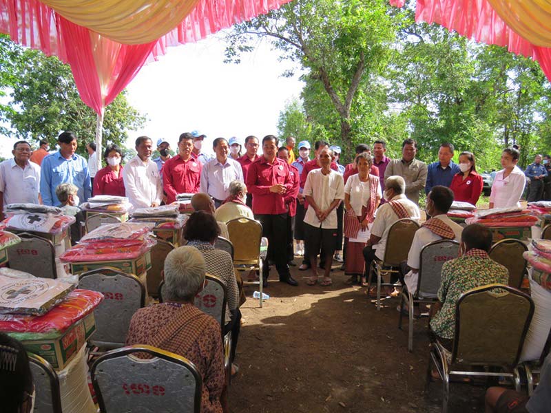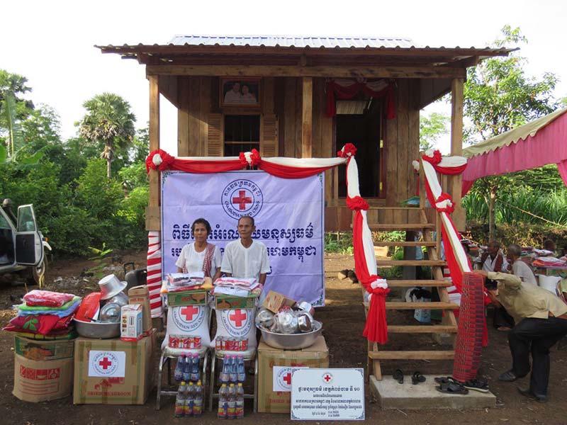 គួរបញ្ជាក់ថា លោក តា ចនព្រុំ អាយុ ៨៧ឆ្នាំ និងប្រពន្ធឈ្មោះ កៅ អាន អាយុ៦១ឆ្នាំ ជាជនចាស់ជរាទ័លលំបាក រស់នៅពឹងអាស្រ័យតែលើប័ណ្ណសមធម៌ ក្នុង១ខែ ប្រមាណជា២០ម៉ឺនរៀល ។ ខណៈ ដែលកូនប្រុសស្រី ៤នាក់ បានរៀបការបែកគ្រួសារ ប៉ុន្តែជីវភាពក្រលំបាកដូចគ្នា មិនអាចពឹងពាក់គ្នាបាន ។ ជាច្រើនឆ្នាំមកនេះ លោកតាព្រុំ វ័យកាន់តែជរា ហើយ យាយ អាន ក៏មានជម្ងឺប្រចាំកាយ ថែមទៀត នាំអោយជីវភាពកាន់តែលំបាក ស្នាក់នៅក្នុងកូនខ្ទមតូចទ្រុឌទ្រោមខ្លាំង ដោយស្ថានភាពលំបាកបែបនេះ លោក អ៊ុន ចាន់ដា ប្រធានគណៈកម្មាធិការសាខា បានសម្រេចផ្តល់ជូនផ្ទះឈើខ្ពស់ផុតពីដី ប្រក់ស័ង្កសី (ទំហំ៤ម×៦ម) ១ខ្នង តម្លៃប្រមាណជា១០លានរៀល ព្រមទាំងផ្តល់សម្ភារ គ្រឿងឧបភោគ បរិភោគ សម្រាប់សង្កត់ផ្ទះថ្មីនេះ រួមមាន អង្ករ ៥០គក្រ, ត្រីខ ២០កំប៉ុង, ទឹកត្រី ១២ដប ទឹកស៊ីអ៊ីវ ១២ដប, មី ២កេស, ឃីត ២សម្រាប់, អាវយឺត ១២, ម៉ាស់ ២ប្រអប់ , សម្ភារផ្ទះបាយមួយចំនួន និងថវិកា ២០ម៉ឺនរៀល ។ ដោយឡែក លោកយាយ លោកតា ដែលចូលរួមជាសាក្សី ក្នុងពិធីប្រគល់-ទទួលផ្ទះថ្មីនេះ ចំនួន ២០នាក់ ក្នុងម្នាក់ៗ ទទួលបាន អង្ករ ត្រីខ ឃីត មី ទឹកត្រី ទឹកស៊ីអ៊ីវ និង អាវយឺត ម៉ាស់ ព្រមទាំង ថវិកាចំនួន ២ម៉ឺនរៀលផងដែរ ៕