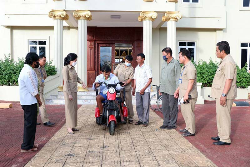 ខេត្តប៉ៃលិន ៖ ក្រោយពីសង្កេតឃើញបុរសពិការឯកោម្នាក់ ប្រើដៃរុញរទេះជនពិការរបស់ខ្លួនឡើងទួលចុះចំណោតជារៀងរាល់ថ្ងៃ ដើម្បីរើសអេតចាយ ដូចជា សំបកដបជ័រ សំបកកំប៉ុងស្រាបៀរ ជាដើម ដែលគេបោះចោលនៅតាមចិញ្ចើមផ្លូវ យកទៅលក់ បានថវិកាបនិ្តចបន្តួច សម្រាប់ទិញម្ហូបអាហារផ្គត់ផ្គង់ជីវភាពប្រចាំថ្ងៃ ខណ:រស់យ៉ាងត្រដាបត្រដួសគួរឱ្យអាណិតពន់ពេក។ តែដោយមានការយកចិត្តទុកដាក់ពីថ្នាក់ដឹកនាំខេត្តប៉ៃលិន ទើបនៅរសៀលថ្ងៃទី២១ ខែមិថុនា ឆ្នាំ២០២២នេះ លោកជំទាវ បាន ស្រីមុំ អភិបាលខេត្តប៉ៃលិន បានសម្រេចចិត្តទិញម៉ូតូអគ្គិសនីថ្មីសន្លាង១គ្រឿង យកទៅប្រគល់ជូនតែម្តង។