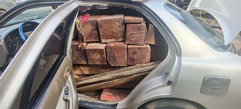 រថយន្តដឹកឈើខាងលើ ម៉ាក កាមមេរី ហើម ពណ៌ស្ករ ពាក់ស្លាកលេខ (ភ្នំពេញ 2D-7164) ឃាត់បាន ត្រង់ចំណុចជិតរង្វង់មូលតោ៨ រូបសំណាកអាចារ្យលាក់ សង្កាត់អាចារ្យលាក់ ក្រុងស្ទឹងសែន ខេត្តកំពង់ធំ វេលាម៉ោងប្រមាណ ៨:៣០នាទី ព្រឹកថ្ងៃទី២១ ខែមិថុនា ឆ្នាំ២០២២។
