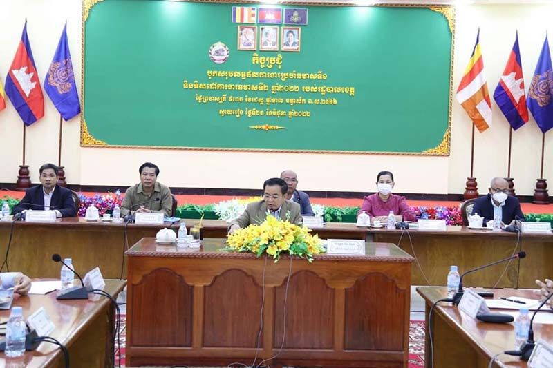 ខេត្តស្វាយរៀង៖នាព្រឹកថ្ងៃព្រហស្បតិ៍ ៩រោច ខែជេស្ឋ ឆ្នាំខាល ចត្វាស័ក ព.ស២៥៦៦ ត្រូវនឹងថ្ងៃទី២៣ ខែមិថុនា ឆ្នាំ២០២២នេះ ឯកឧត្តមម៉ែន វិបុល អភិបាល នៃគណ:អភិបាលខេត្តស្វាយរៀង និងជាប្រធានគណៈបញ្ជាការឯកភាពរដ្ឋបាលខេត្តបានអញ្ជើញជាអធិបតីក្នុងកិច្ចប្រជុំបូកសរុបលទ្ធផលការងារប្រចាំឆមាសទី១ និងទិសដៅការងារឆមាសទី២ ឆ្នាំ២០២២ របស់រដ្ឋបាលខេត្តស្វាយរៀង។
