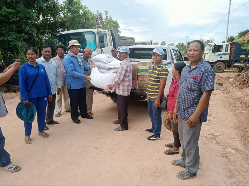 សូមបញ្ជាក់ផងដែរថា សម្ភារៈដែលយកទៅផ្តល់ជូនរួមមានៈ – អង្ករចំនួន១០បេ – មីចំនួន៦កេះតូច – ទឹកត្រីចំនួន១កេះ – ទឹកស៊ីអ៊ីវចំនួន១កេះ- ត្រីខចំនួន១កេះរួមនិងថវិការផ្ទាល់ខ្លួនរបស់ឯកឧត្ដមដើម្បីជួយឧបត្ថម្ភដល់ក្រុមគ្រឿងចក្រជួសជុលផ្លូវ ចំនួន ៤០០០០០៛ ក្នុងនោះ
