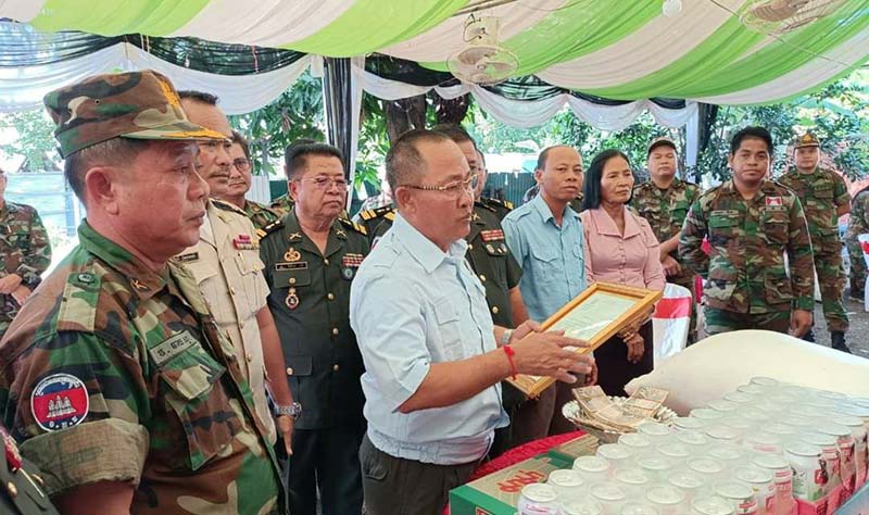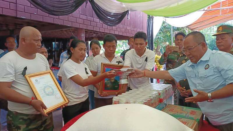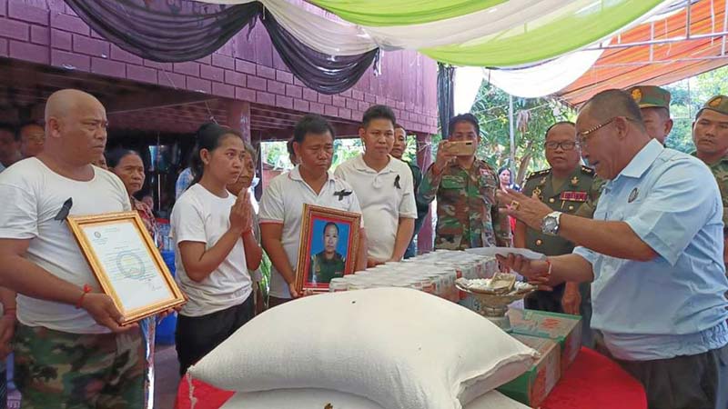 ព្រះវិហារៈ នៅរសៀលថ្ងៃទី២៣ ខែមិថុនា ឆ្នាំ២០២២ ឯកឧត្តម ឧត្ដម សេនីយ៍ទោ ចន្ទ័ សុភ័ក្រ្ដា មេបញ្ជាការ តំបន់ប្រតិបត្ដិការសឹករងព្រះវិហារ និងជាប្រធានសមាគមអតីតយុទ្ធជនកម្ពុជាខេត្ដព្រះវិហារ បានអញ្ជើញដឹកនាំក្រុមកាងារសមាគម ចុះប្រគល់ថវិកាបេឡាមរណះសង្គ្រោះចំនួន ៤លានរៀល ជូនដល់គ្រួសារសពអតីតយុទ្ធជនដែលមានឈ្មោះ សោម អៀងលី ភេទប្រុស អាយុ៦៧ឆ្នាំ មុខសញ្ញាជនពិការ ជាសមាជិកសមាគមអតីតយុទ្ធជនកម្ពុជាខេត្ដព្រះវិហារ ដែលបានទទួលមរណៈភាព នៅថ្ងៃទី ២១ ខែមិថុនា ឆ្នាំ២០២២កន្លងទៅនេះ ស្ថិតនៅភូមិស្រះឈូក សង្កាត់កំពង់ប្រណាក ក្រុងព្រះវិហារ ខេត្តព្រះវិហារ ដោយរោគា។
