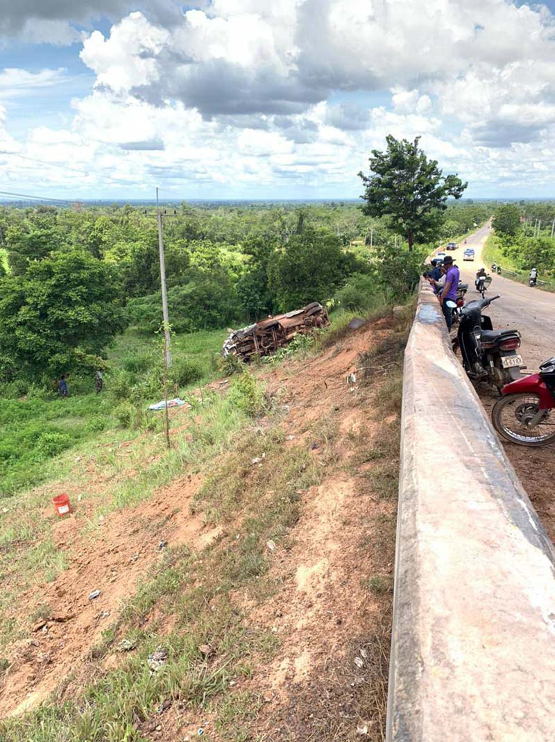 សមត្ថកិច្ចមូលដ្ធានដែលនៅកន្លែងកើតហេតុបានឲ្យដឹងថាមានករណីគ្រោះថ្នាក់ចរាចរណ៍មួយកើតឡើងស្ថិតនៅតាមបណ្តោយផ្លូវជាតិលេខ៦៧ Bចន្លោះបង្គោលលេខ១៣១ និង១៣២ក្នុងភូមិជើងភ្នំ ឃុំត្រពាំងប្រីយ៍ ស្រុក អន្លង់វែង ខេត្តឧត្ដរមានជយ័ បង្កឡើងដោយរថយន្តបែនប្រភេទដឹកដី បានបើកចុះពីលើភ្នំដងរ៉ែកក្នុងល្បឿនលឿនគេសង្ស័យដាច់ហ្វាំង បណ្តាលឲ្យបុកបង្កានដៃរនាំងថ្មផ្លូវក្រឡាប់ធ្លាក់ចុះក្រោមជាច្រើនត្រឡប់បណ្តាលឲ្យអ្នក