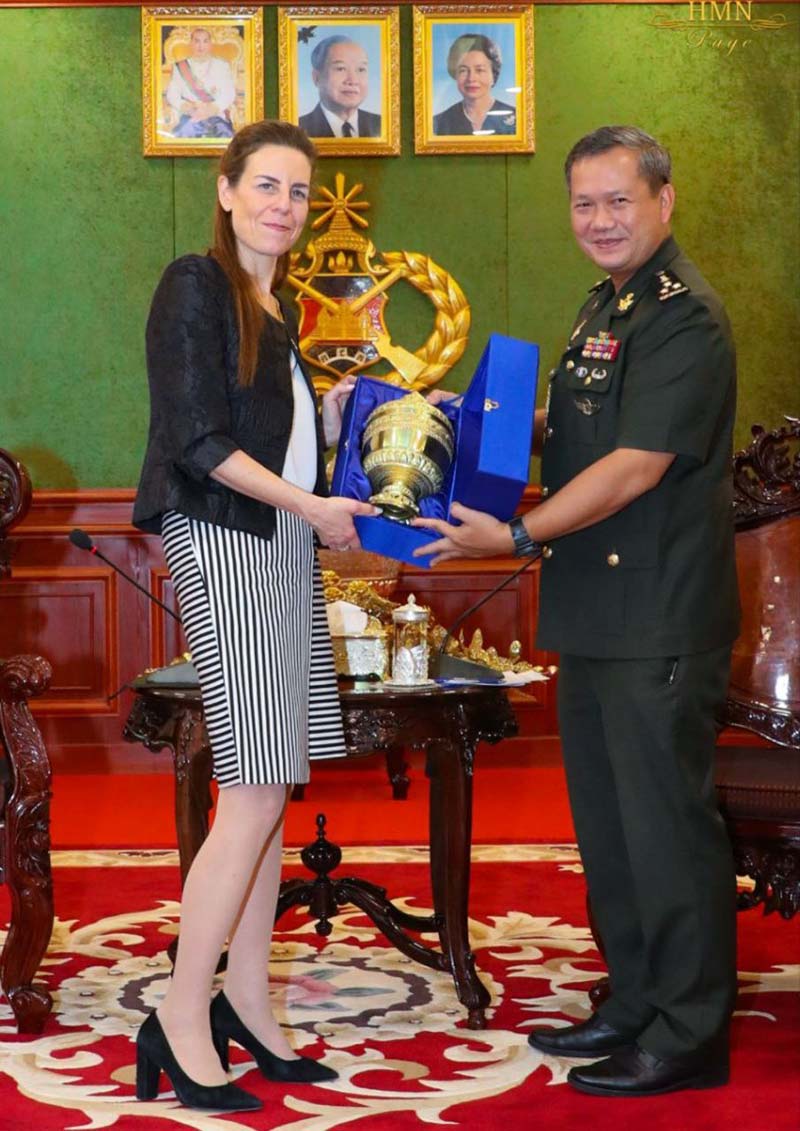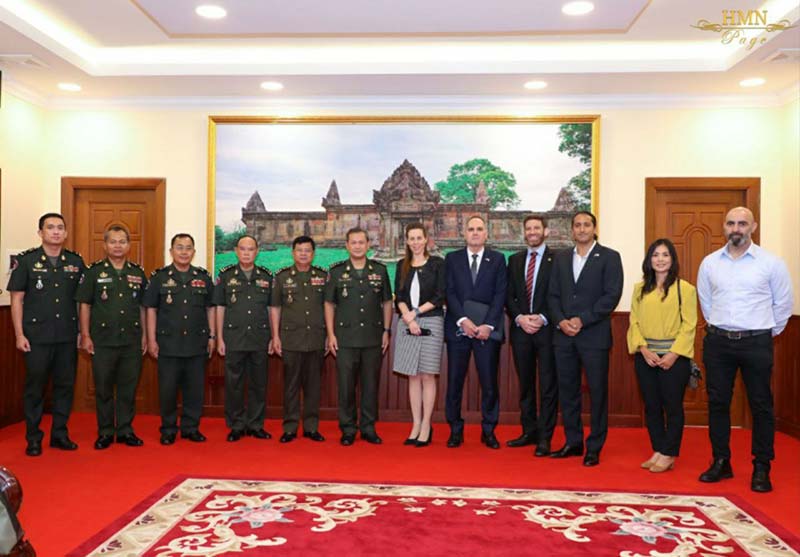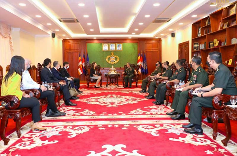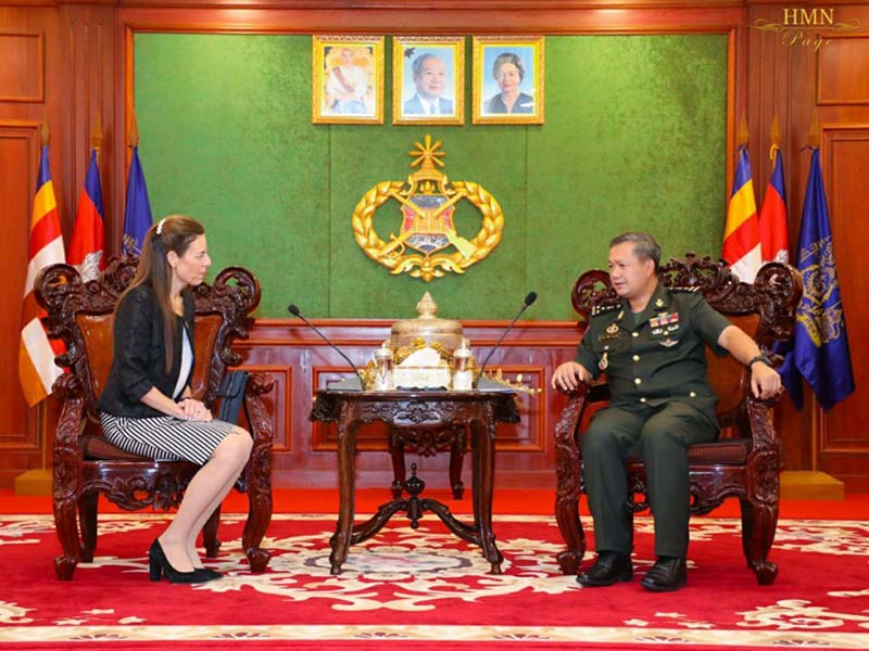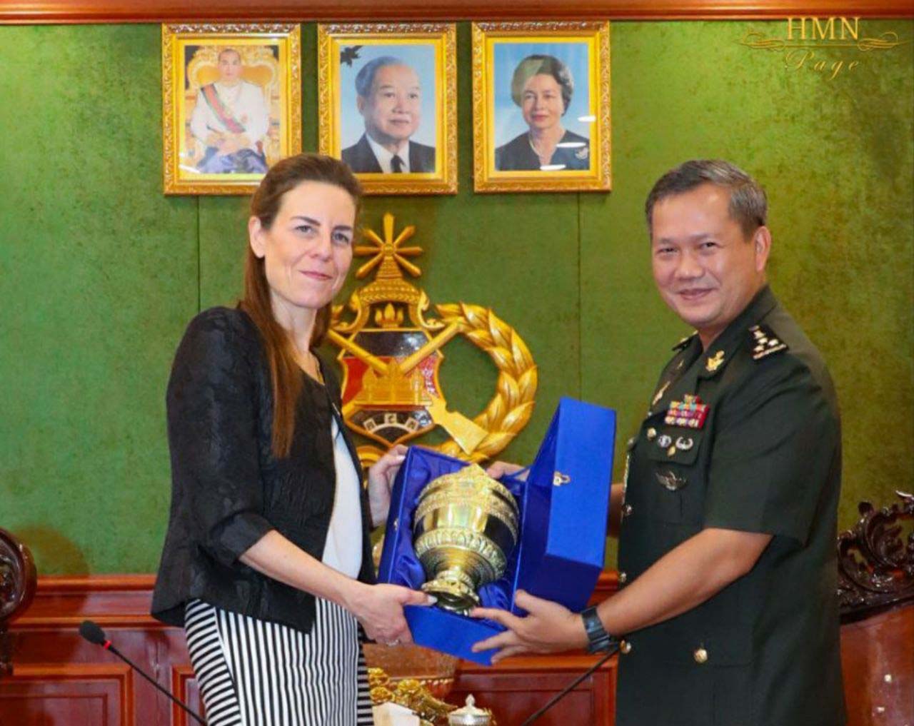 ភ្នំពេញ : នារសៀលថ្ងៃទី៣០ ខែមិថុនា ឆ្នាំ២០២២ នៅទីបញ្ជាការកងទ័ពជើងគោក នៃកងយោធពលខេមរភូមិន្ទ ឧត្តមសេនីយ៍ឯក ហ៊ុន ម៉ាណែត អគ្គមេបញ្ជាការរង នៃកងយោធពលខេមរភូមិន្ទ មេបញ្ជាការកងទ័ពជើងគោក បានទទួលជួបសំណេះសំណាល និងពិភាក្សាការងារជាមួយលោកស្រី អ័រណា សាហ្គីវ (Orna Sagiv) ឯកអគ្គរដ្ឋទូតនៃរដ្ឋអ៊ីស្រាអែល ទទួលបន្ទុកកម្ពុជា មាននិវេសនដ្ឋាននៅរាជធានីបាងកក ក្នុងឱកាសដែលលោកស្រី បានអញ្ជើញមកបំពេញទស្សនកិច្ចការងារ និងចូលគាល់ព្រះមហាក្សត្រនៃព្រះរាជាណាចក្រកម្ពុជា ដើម្បីថ្វាយសារតាំង។