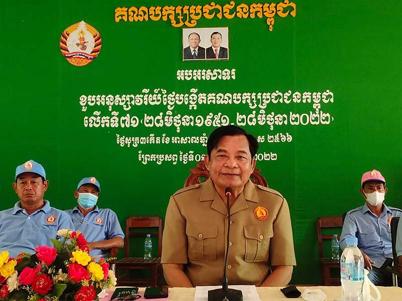 ក្រចេះ៖នាព្រឹកថ្ងៃទី ០១ កក្តដា ឆ្នាំ ២០២២ ឯកឧត្តម សរ ចំរុង សមាជិកគណៈកម្មាធិការកណ្តាលគណបក្សប្រជាជនកម្ពុជា ប្រធានគណៈកម្មាការទី១ នៃរដ្ឋសភា និងជាអ្នកតំណាងរាស្រ្តមណ្ឌលក្រចេះ អញ្ជើញជួបសំណេះសំណាលបងប្អូនសមាជិកសមាជិការគណបក្សឃុំទាំង០៨ ក្នុងស្រុកព្រែកប្រសព្វ នៅក្នុងឱកាសអបអរសារទរខួបអនុស្សាវរីយ៍លើកទី ៧១ នៃថ្ងៃបង្កើតគណបក្សប្រជាជនកម្ពុជា និងបានថ្លែងអំណរគុណចំពោះបងប្អូនប្រជាពលរដ្ឋដែលបានជឿជាក់មកលើកគោលនយោបាយដឹកនាំរបស់គណបក្សប្រជាជន និងបានបន្តចូលរួមបោះឆ្នោតគាំទ្រជូនគណបក្សប្រជាជនកម្ពុជា