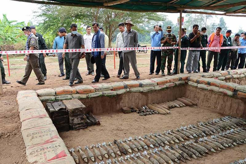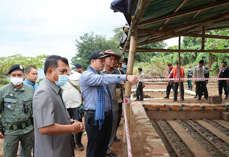 កំពង់ចាមៈ នៅព្រឹកថ្ងៃទី ០៩ ខែកុម្ភៈ ឆ្នាំ ២០២១នេះ ឯកឧត្តម អ៊ុន ចាន់ដា អភិបាលនៃគណអភិបាលខេត្តកំពង់ចាម បានដឹកនាំ លោកអភិបាលរងខេត្ត/កងកម្លាំងទាំងបីប្រភេទ/លោកនាយក នាយករងរដ្ឋបាលសាលាខេត្ត/ អាជ្ញាធរស្រុកកងមាស-ស្រីសន្ធរ និងមន្ត្រីពាក់ព័ន្ធមួយចំនួន និងដោយបានទទួលការស្វាគមន៍យ៉ាងកក់ក្តៅពីលោកឧត្តមសេនីយ៍ទោ ម៉ី សុភា មេបញ្ជាការបោសសម្អាតគ្រាប់មិនទាន់ផ្ទុះ នៃមជ្ឈមណ្ឌលជាតិគ្រប់គ្រង កងកម្លាំងរក្សាសន្តិភាព បោសសម្អាតមីន និងកាកសំណល់សង្គ្រាម (NPMEC) បានអញ្ជើញចុះពិ និត្យទីតាំងដែលរកឃើញគ្រាប់យុទ្ធភណ្ឌជាង ០៦តោន ចេញពី ខ្មោច នាវាចម្បាំង ដែលលិចនៅក្នុងទន្លេ មេគង្គ ខេត្តកំពង់ចាម ប្រមាណជាង ៥០ឆ្នាំមុន។