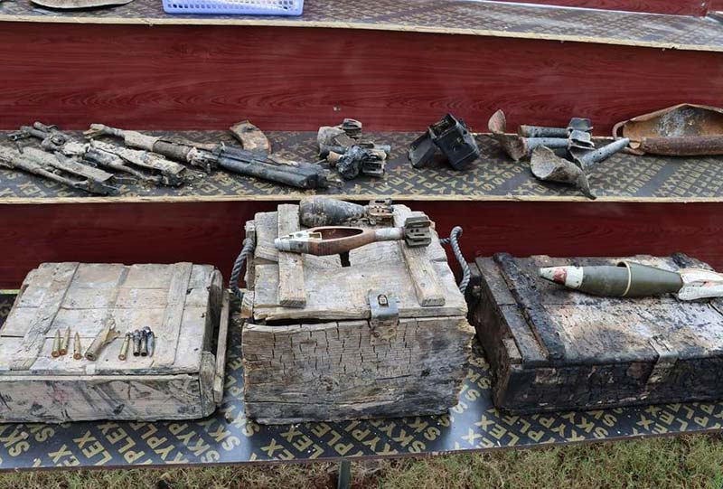 គូរបញ្ជាក់ថា! បន្ទាប់ពីទទួលបានរបាយការណ៍ពី ឯកឧត្តម អ៊ុន ចាន់ដា អភិបាលនៃគណៈអភិបាលខេត្តកំពង់ចាម រាយការណ៍ថាមានខ្មោចនាវាច្បាំងបន្សល់ទុកពីសម័យសាធារណរដ្ឋ ខ្មែរ ឆ្នាំ ១៩៧០-១៩៧៥ ដែលបានរកឃើញ នៅក្នុង ទឹក ទន្លេមេគង្គ ស្ថិត ក្នុង ភូមិវាល ឃុំមានជ័យ ស្រុក ស្រីសន្ធរ ខេត្ត កំពង់ចាម នោះ ក្រុមការងារកងកម្លាំងបោសសំអាតគ្រាប់ យុទ្ធភ័ណ មិន ទាន់ ផ្ទុះ ដែលមាន ឯកឧត្តម នាយឧត្ដមសេនីយ នាង ផាត ជាប្រធាន បានបន្តរុករកឃើញគ្រប់យុទ្ធភណ្ឌមិនទាន់ផ្ទុះសរុបជាង ០៦តោន និងបន្តរុករកនូវសម្ភារៈសង្រ្គាមជាបន្តបន្ទាប់នៅក្នុងកប៉ាល់នោះផងដែរ។ SKS