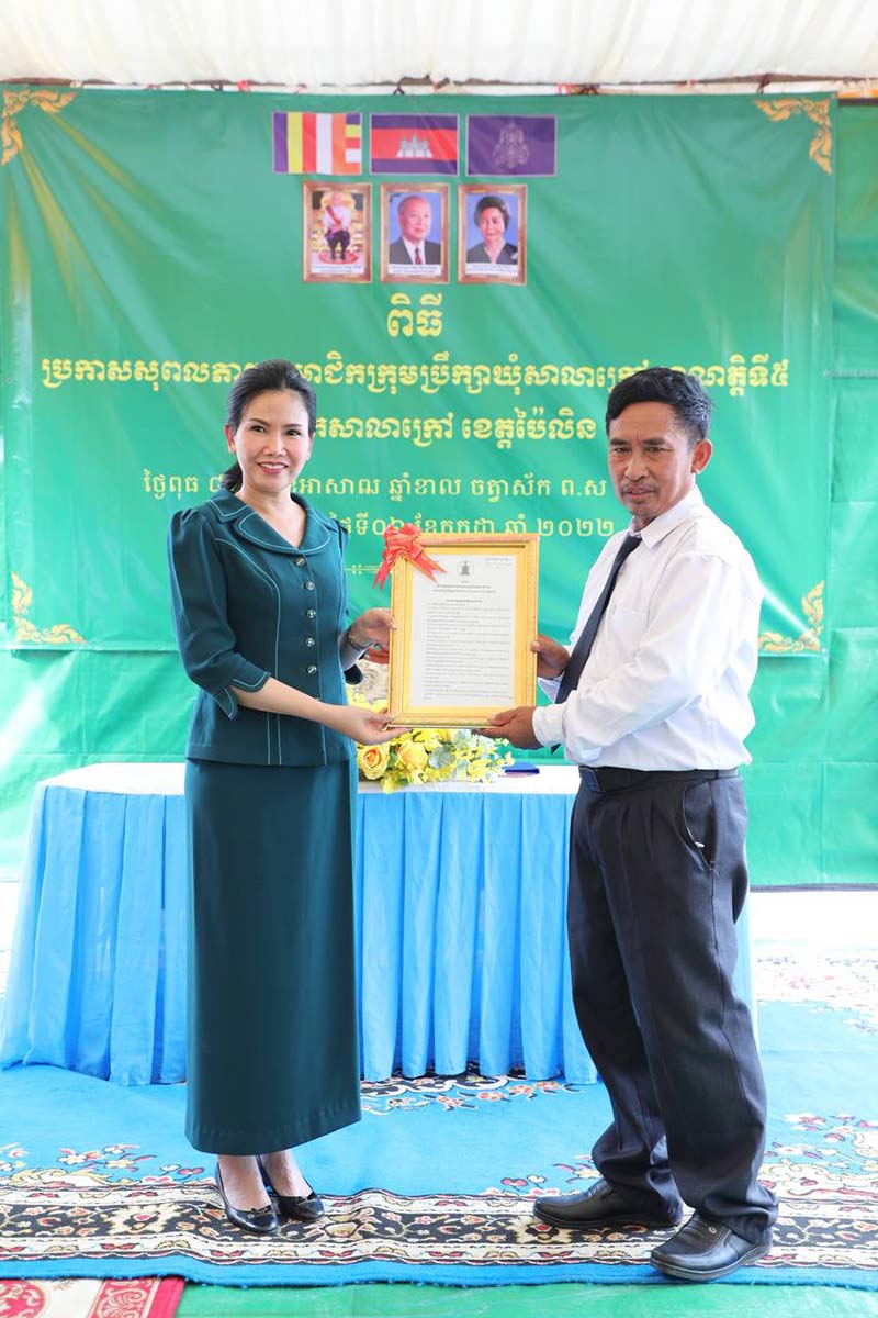 ប៉ៃលិន៖នៅរសៀលថ្ងៃទី០៦ ខែកក្កដា ឆ្នាំ២០២២ លោកជំទាវ បាន ស្រីមុំ អភិបាល នៃគណៈអភិបាលខេត្តប៉ៃលិន បានអញ្ជើញជាអធិបតី ក្នុងពិធីប្រកាសសមាសភាពប្រធានក្រុមប្រឹក្សា ឃុំ មេឃុំរង និងសមាជិកក្រុមប្រឹក្សាឃុំ សាលាក្រៅ អាណត្តិទី៥ ឆ្នាំ២០២២ ដែលពិធីនេះធ្វើឡើងនៅសាលាឃុំ សាលាក្រៅ ស្រុកសាលាក្រៅ ដោយមានការចូលរួមពីសំណាក់ លោកនាយកងរដ្ឋបាលសាលាខេត្ត នាយកទីចាត់ការធនធានមនុស្ស ប្រធានក្រុមប្រឹក្សាស្រុក អាជ្ញាធរស្រុក មន្ត្រីពាក់ព័ន្ធ យុវជនសសយក និងបងប្អូនប្រជាពលយ៉ាងច្រើនកុះករ។