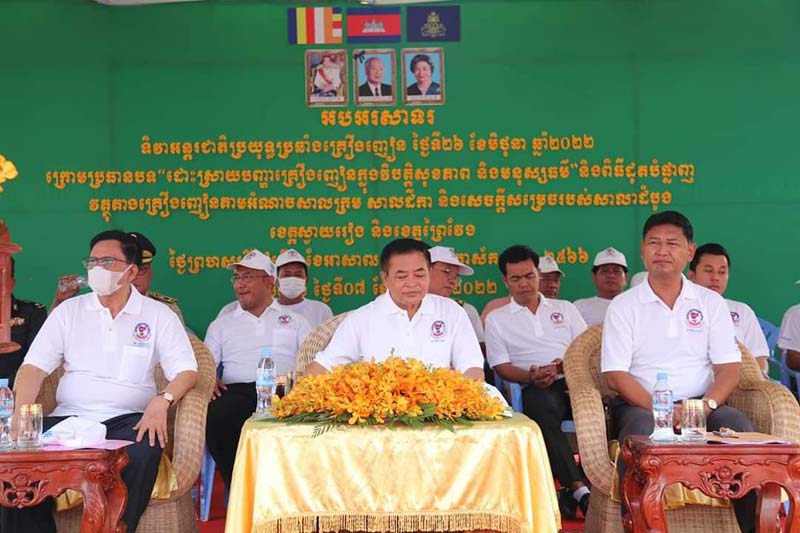ខេត្តស្វាយរៀង៖នាព្រឹកថ្ងៃព្រហស្បតិ៍ ៩កើត ខែអាសាឍ ឆ្នាំខាល ចត្វាស័ក ពុទ្ធសករាជ ២៥៦៦ ត្រូវនឹងថ្ងៃទី៧ ខែកក្កដា ឆ្នាំ២០២២នេះ ឯកឧត្តម ជុំ ហាត ប្រធានក្រុមប្រឹក្សាខេត្ត ឯកឧត្តម ម៉ែន វិបុល អភិបាលខេត្តស្វាយរៀង និងជាប្រធានគណៈកម្មាធិការត្រួតពិនិត្យគ្រឿងញៀនខេត្ត និងឯកឧត្តម ឧត្តមសេណីយ៍ឯក ថោង សុគន្ធា អគ្គលេខាធិការរង អាជ្ញាធរជាតិប្រយុទ្ធប្រឆាំងគ្រឿងញៀន បានអញ្ជេីញជាអធិបតីក្នុងពិធីអ បអរសាទរទិវាអន្តរជាតិប្រយុទ្ធប្រឆាំងគ្រឿងញៀន ថ្ងៃទី២៦ ខែមិថុនា ឆ្នាំ២០២២ ក្រោមប្រធានបទ”ដោះស្រាយបញ្ហាគ្រឿងញៀនក្នុងវិបត្តិសុខភាព និងមនុស្សធម៌” និងពិធីដុតបំផ្លាញវត្ថុតាងគ្រឿងញៀនតាមអំណាចសាលក្រម សាលដីកា និងសេចក្តីសម្រេចរបស់សាលាដំបូង ខេត្តស្វាយរៀង និងខេត្តព្រៃវែង។