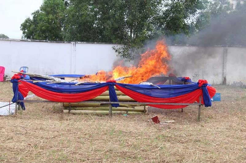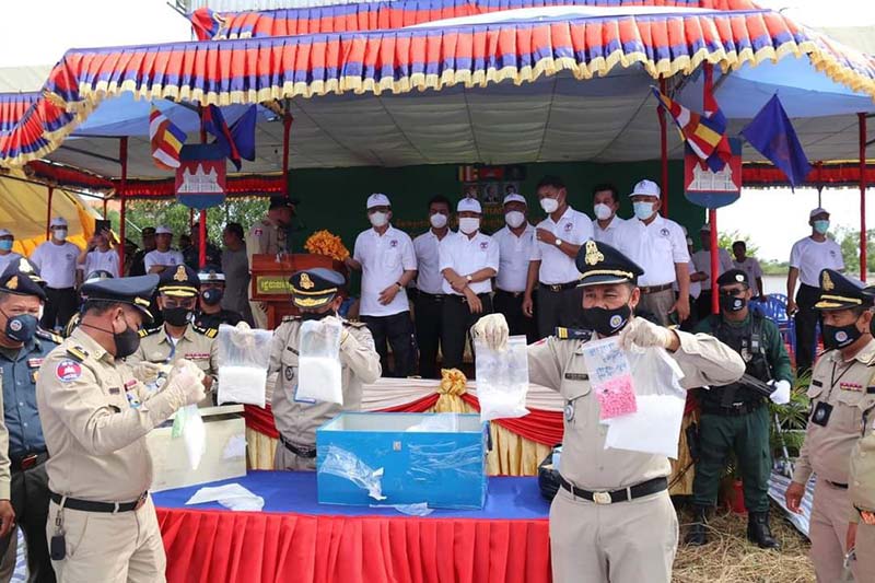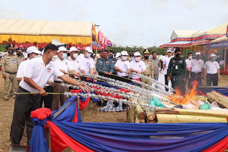 ជាទីបញ្ចប់ឯកឧត្តមអភិបាលខេត្ត និងជាប្រធានគណៈកម្មាធិការត្រួតពិនិត្យគ្រឿងញៀនខេត្ត រួមទាំងគណៈអធិបបានអញ្ជើញបានធ្វើការពិនិត្យនិងដុតបំផ្លាញវត្ថុតាងគ្រឿងញៀននៅទីតាំងដែលរៀបចំជិតពិធីខាងលើ។